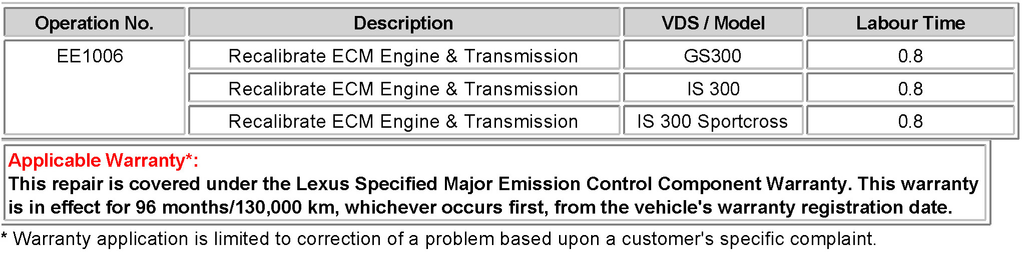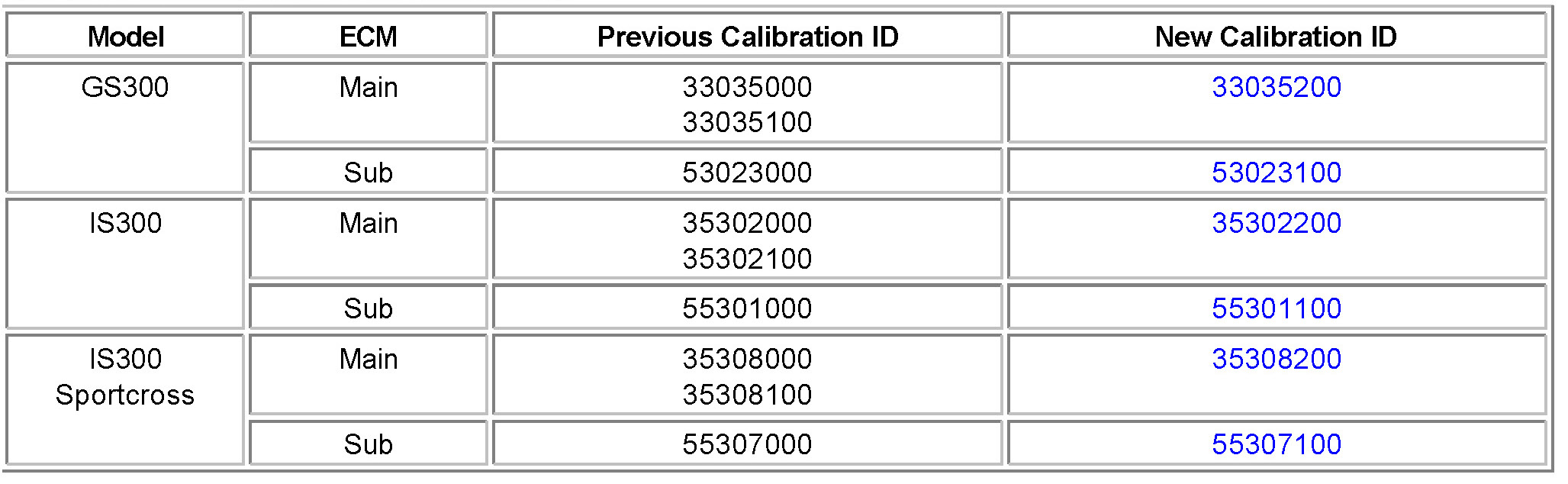 8. If ECU calibration ID is not "New Calibration ID" proceed to Flash Reprogram ECM (IS300 & IS300 Sportcross).