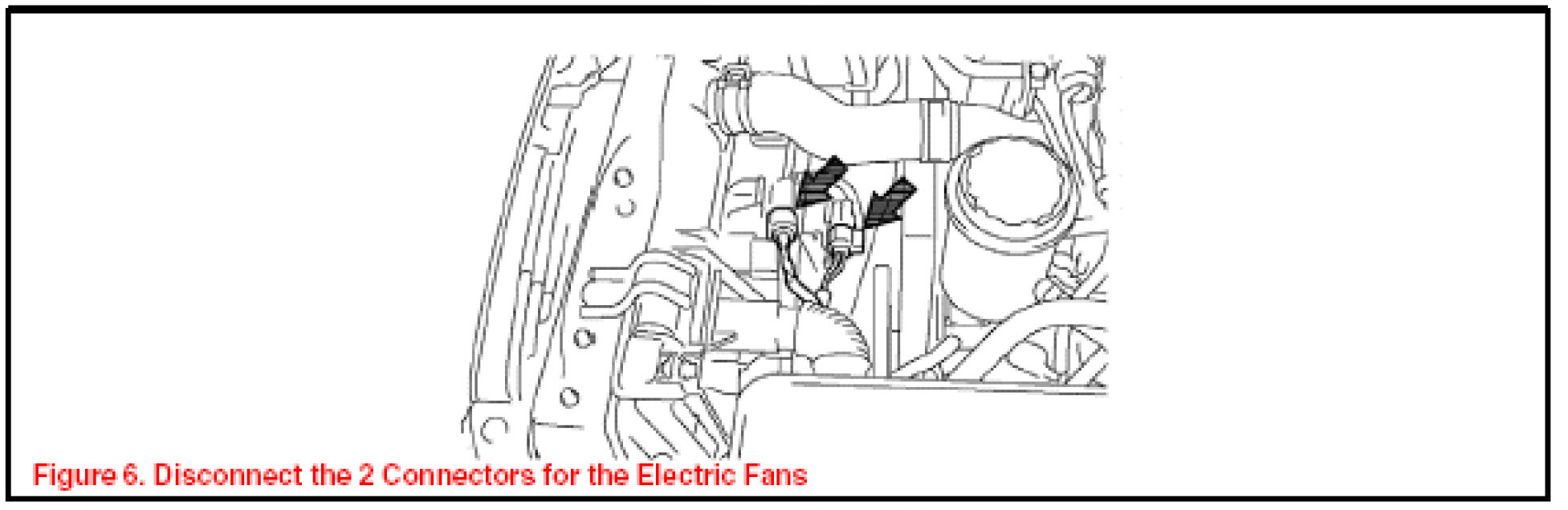 1. Disconnect the 2 connectors for the electric fans (See Figure 6).