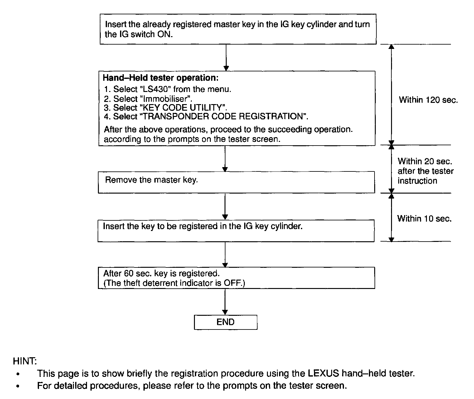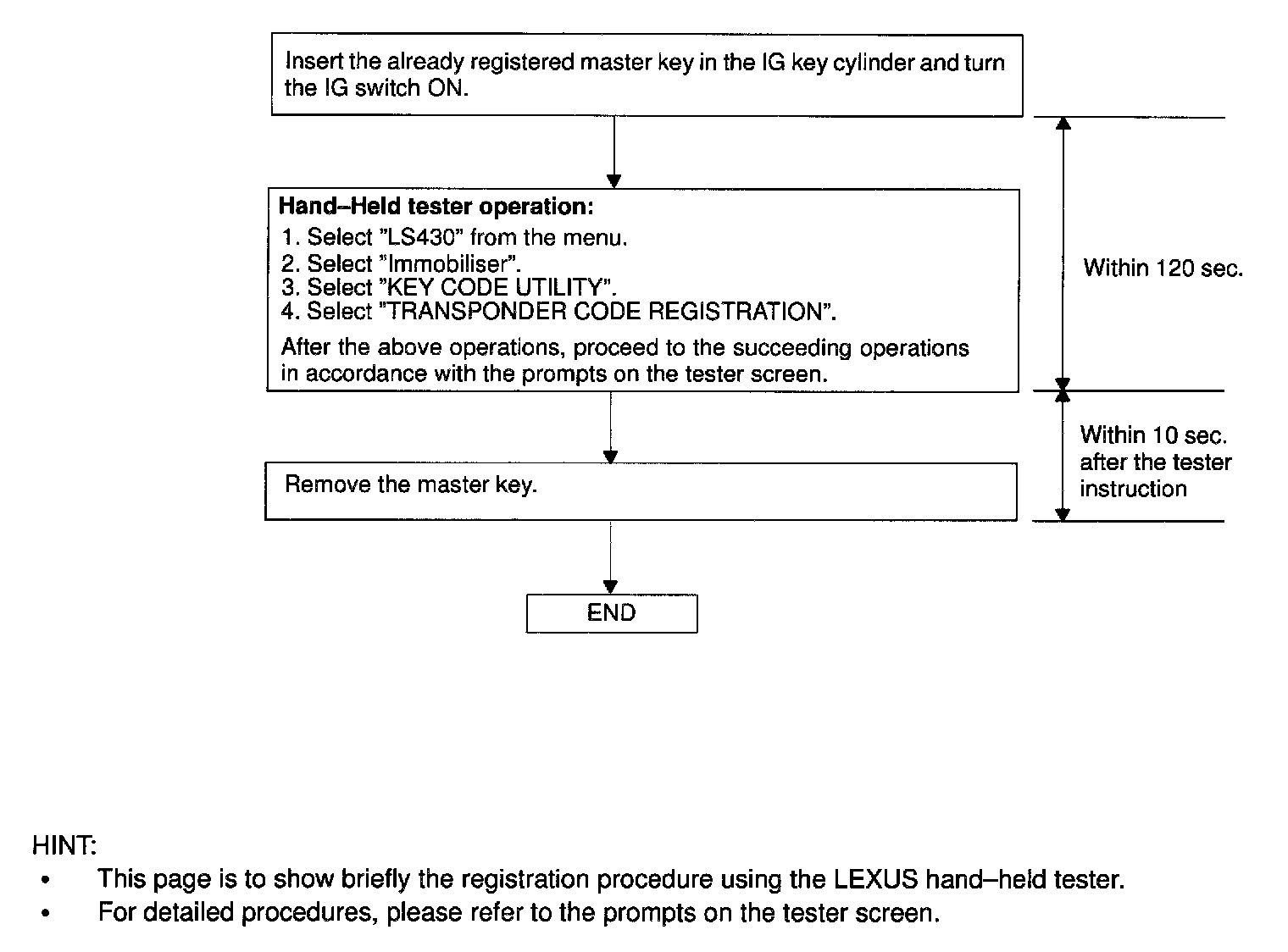 There is 2 ways for registration of additional key; one is by switch operation and the other is by LEXUS hand-held tester.