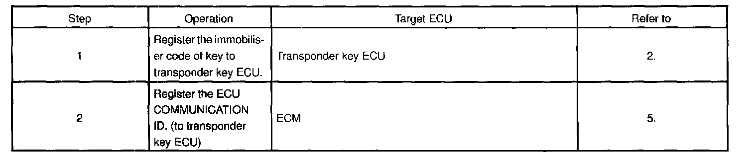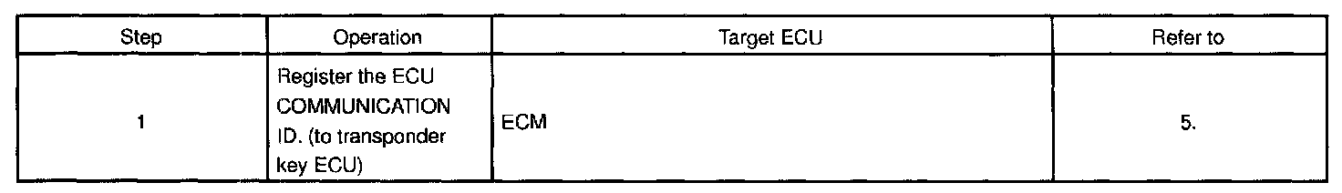 - This operation should be performed when either the Transponder key ECU or the ECM is replaced, in order to match the ECM COMMUNICATION ID of these two ECUs.