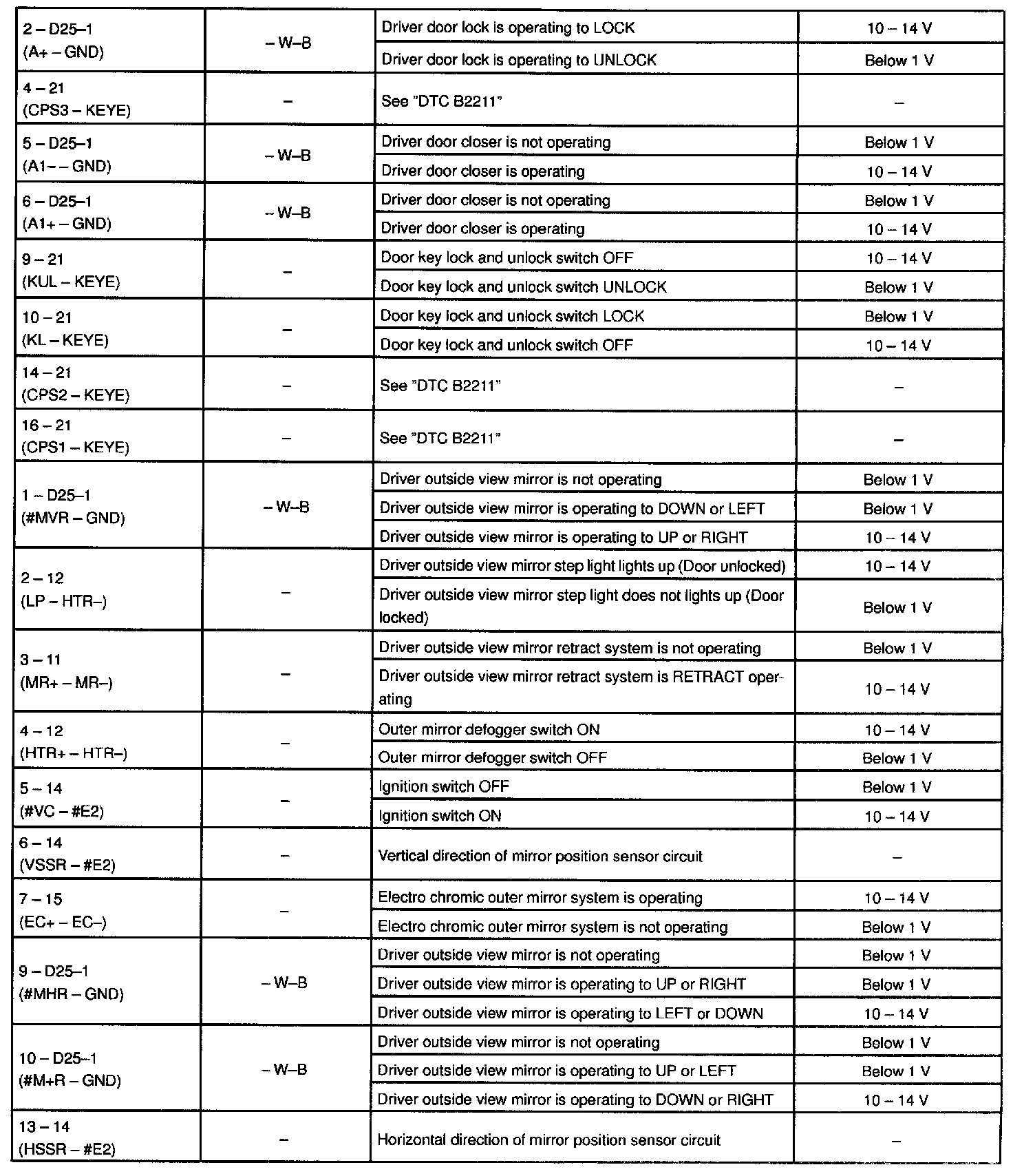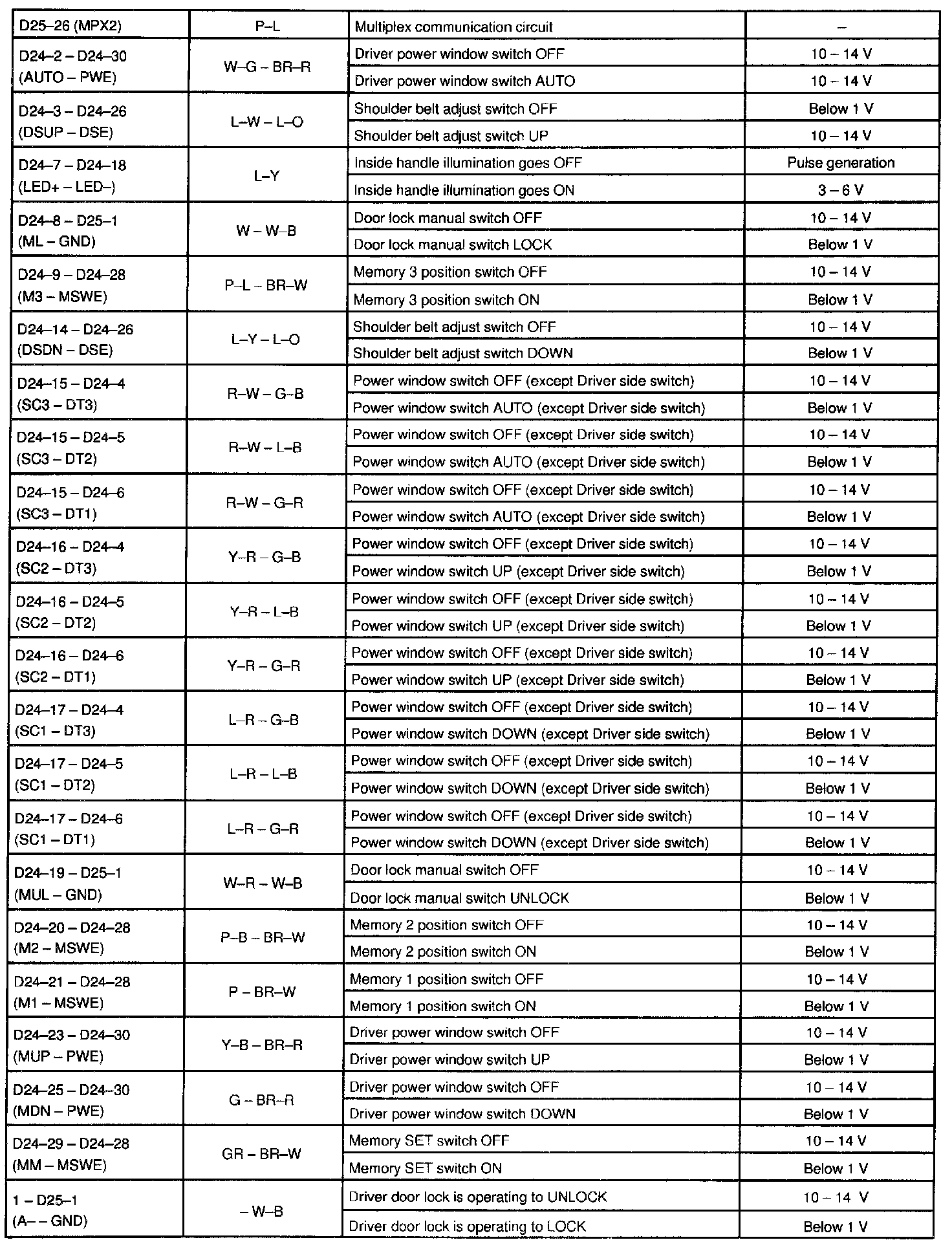 Pinout Values and Diagnostic Parameters