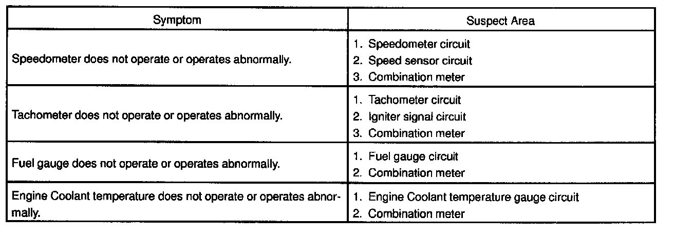 Problem Symptoms Table - Indicator Light And Warning Light Part 1: