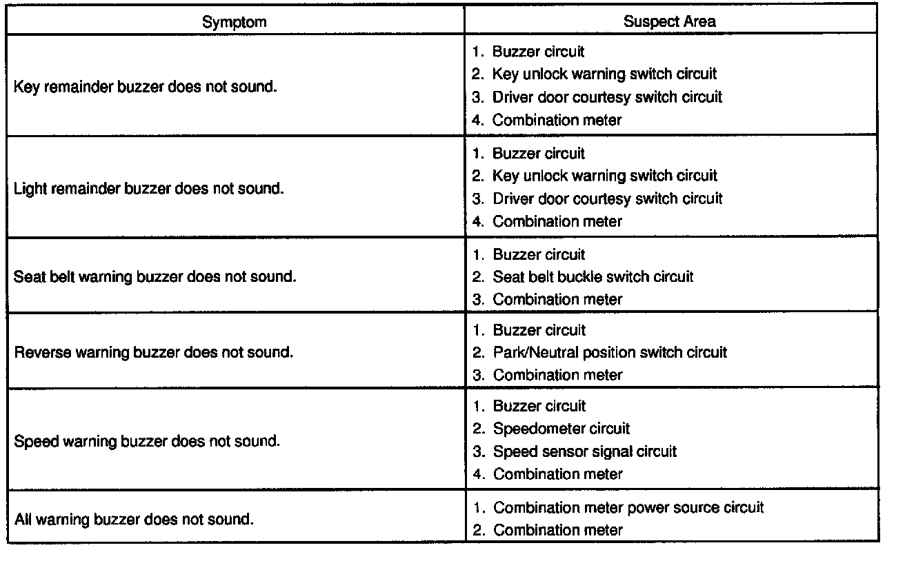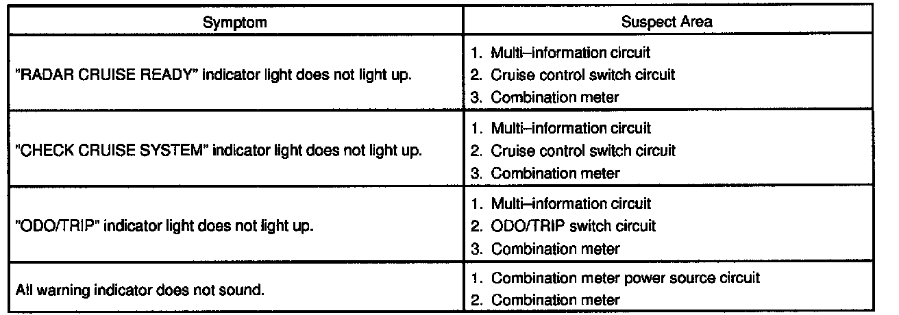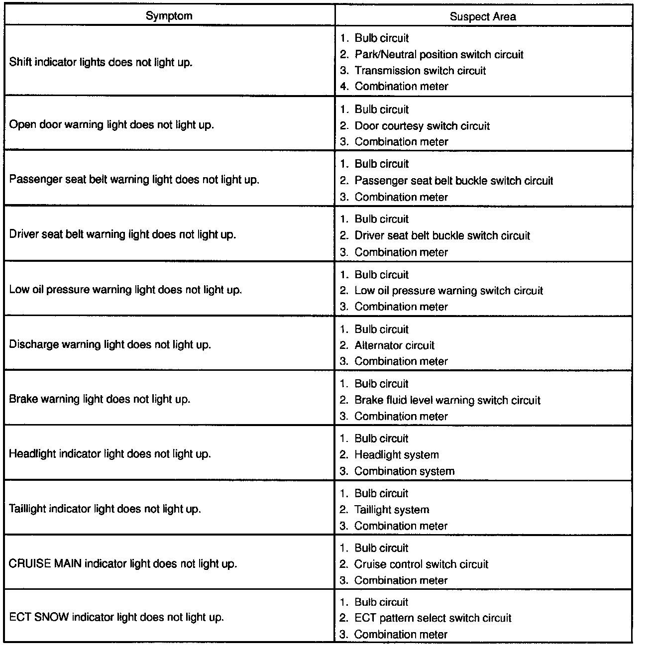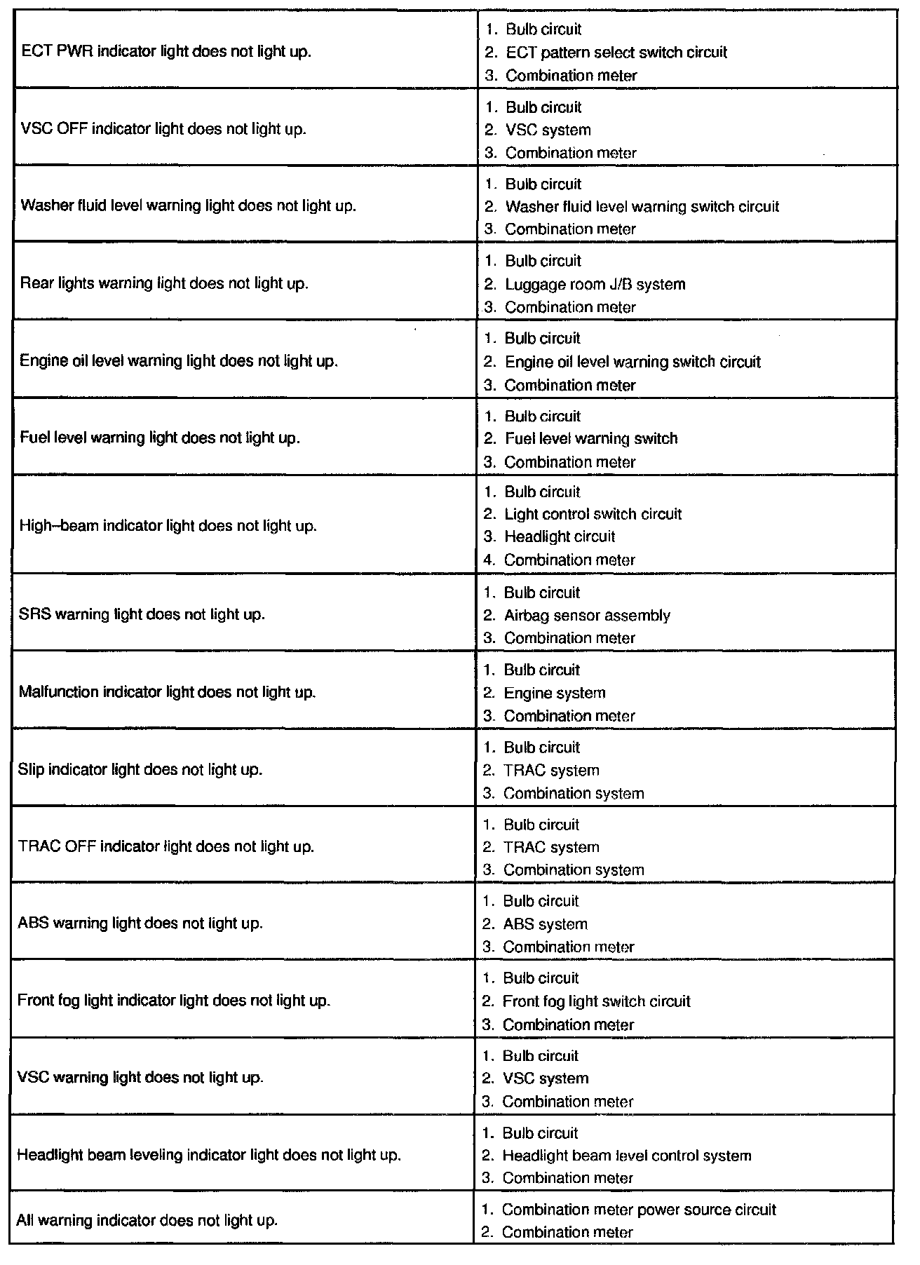 Problem Symptoms Table - Indicator Light And Warning Light Part 2: