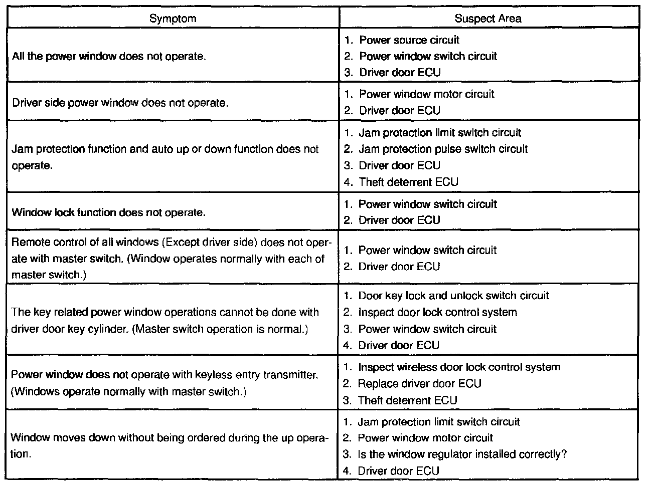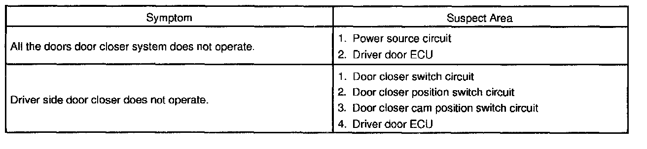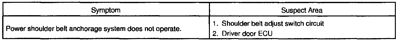 Problem Symptoms Table - Power Shoulder Belt Anchorage System:
