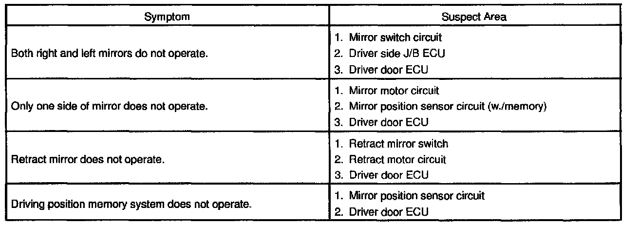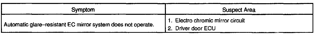 Problem Symptoms Table - Automatic Glare-Resistant EC Mirror System: