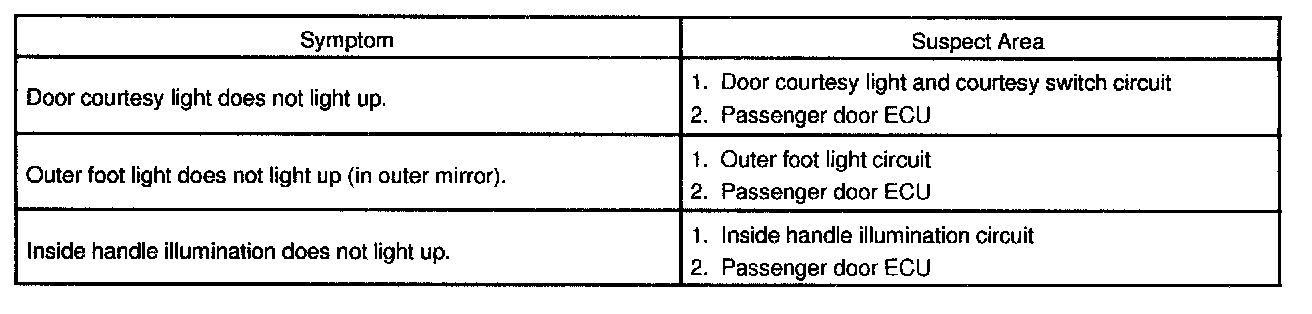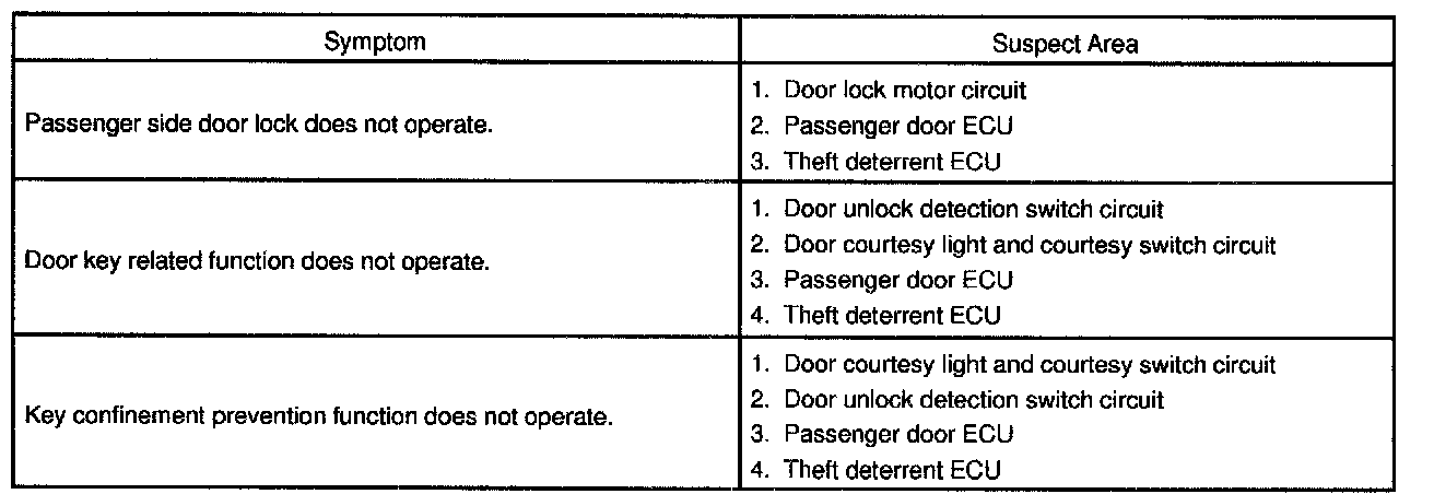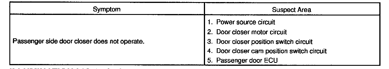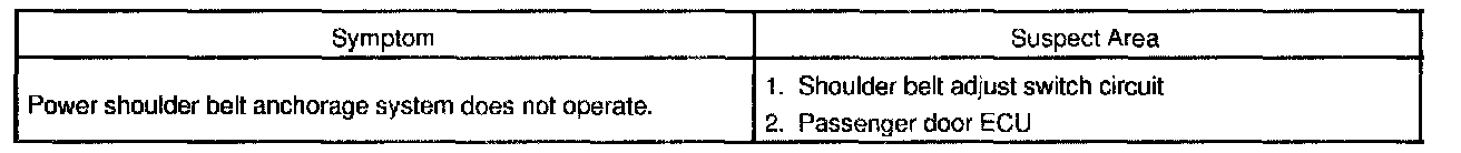 Problem Symptoms Table - Power Shoulder Belt Anchorage System: