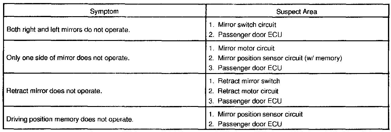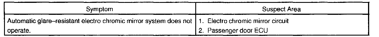 Problem Symptoms Table - Automatic Glare-Resistant Electric Chromic Mirror System: