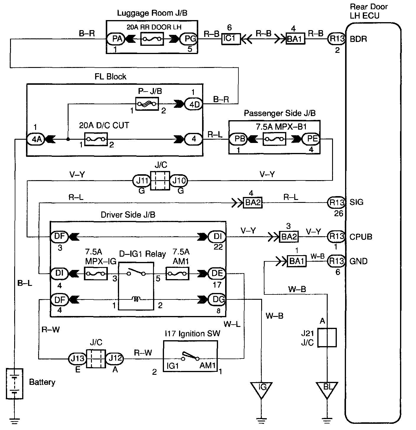 This circuit supplies power to operate the rear door LH ECU.