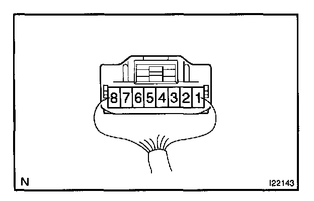 Connect the wire harness side connector to the receiver and inspect the wire harness side connector from the back shown.
