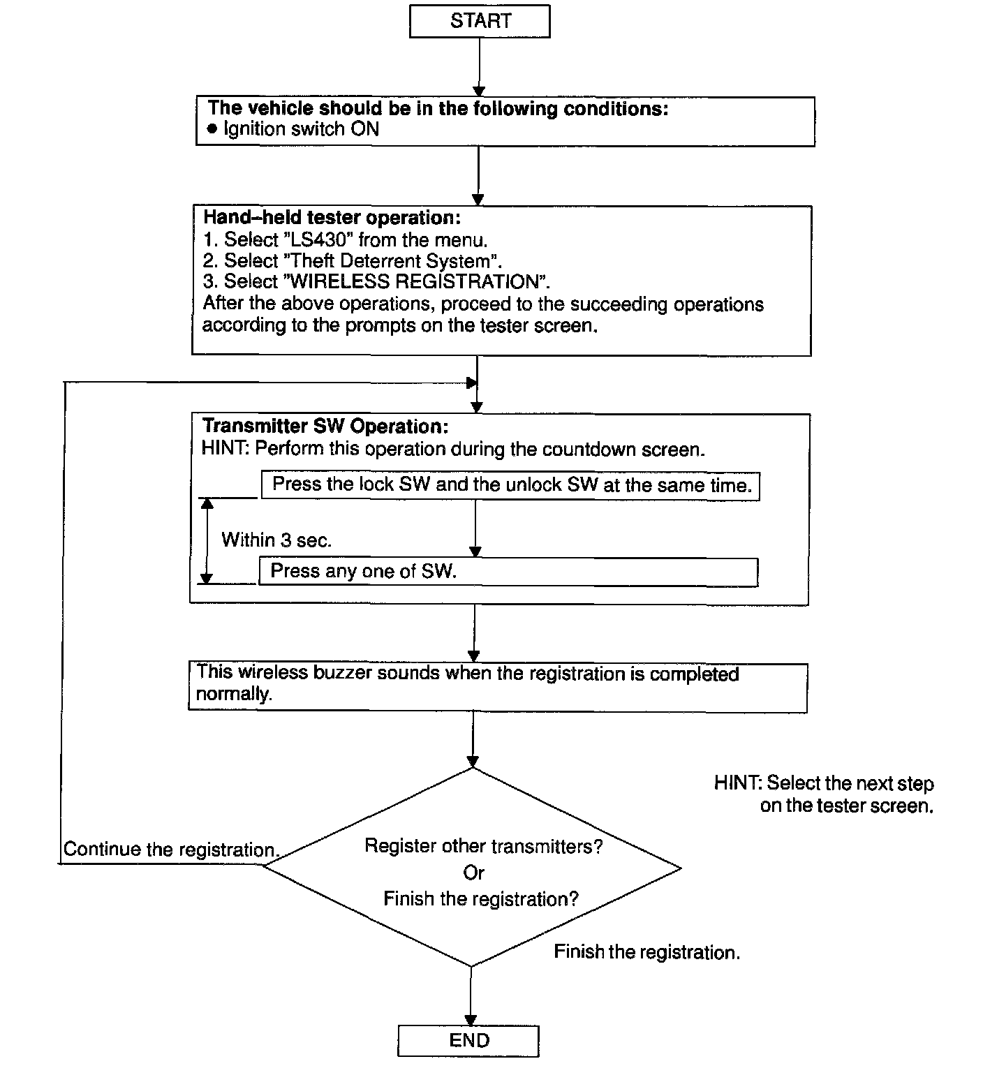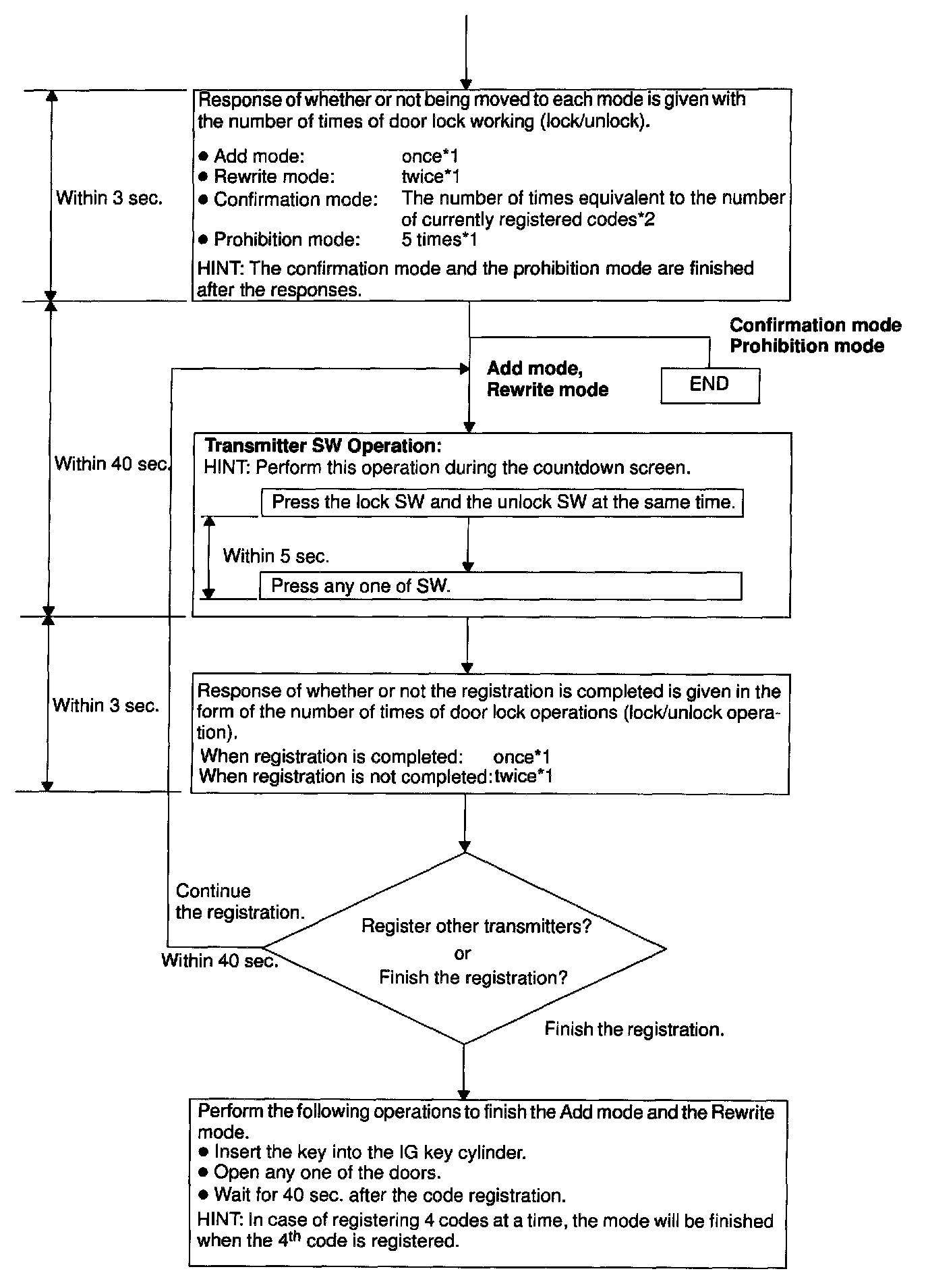 b. Follow the chart to register the transmitter recognition code to the theft deterrent ECU.