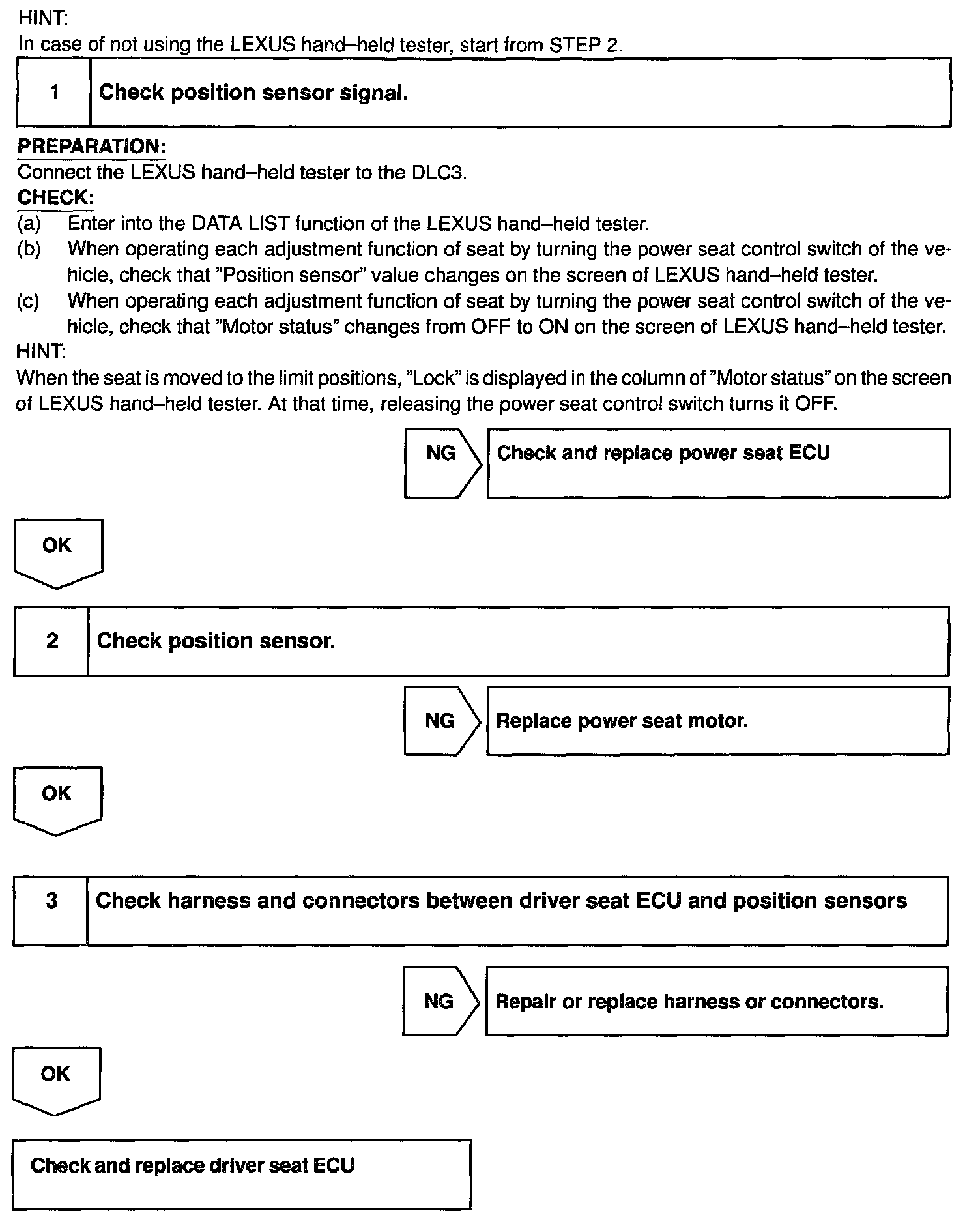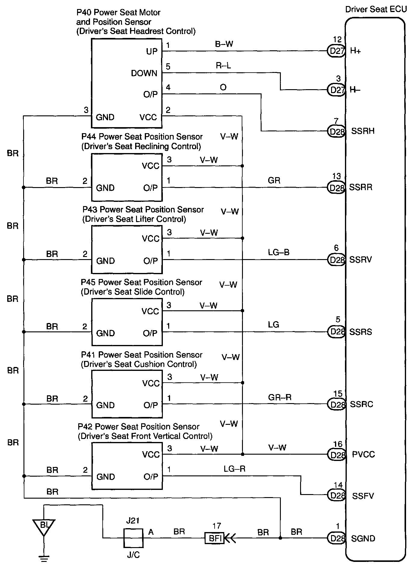 CIRCUIT DESCRIPTIONThe position sensor senses movement of the seat and sends pulse signals to the ECU.