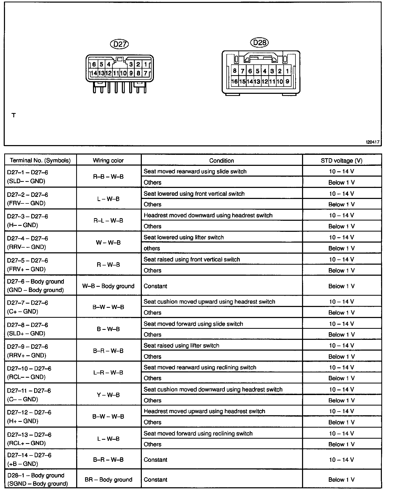 Pinout Values and Diagnostic Parameters