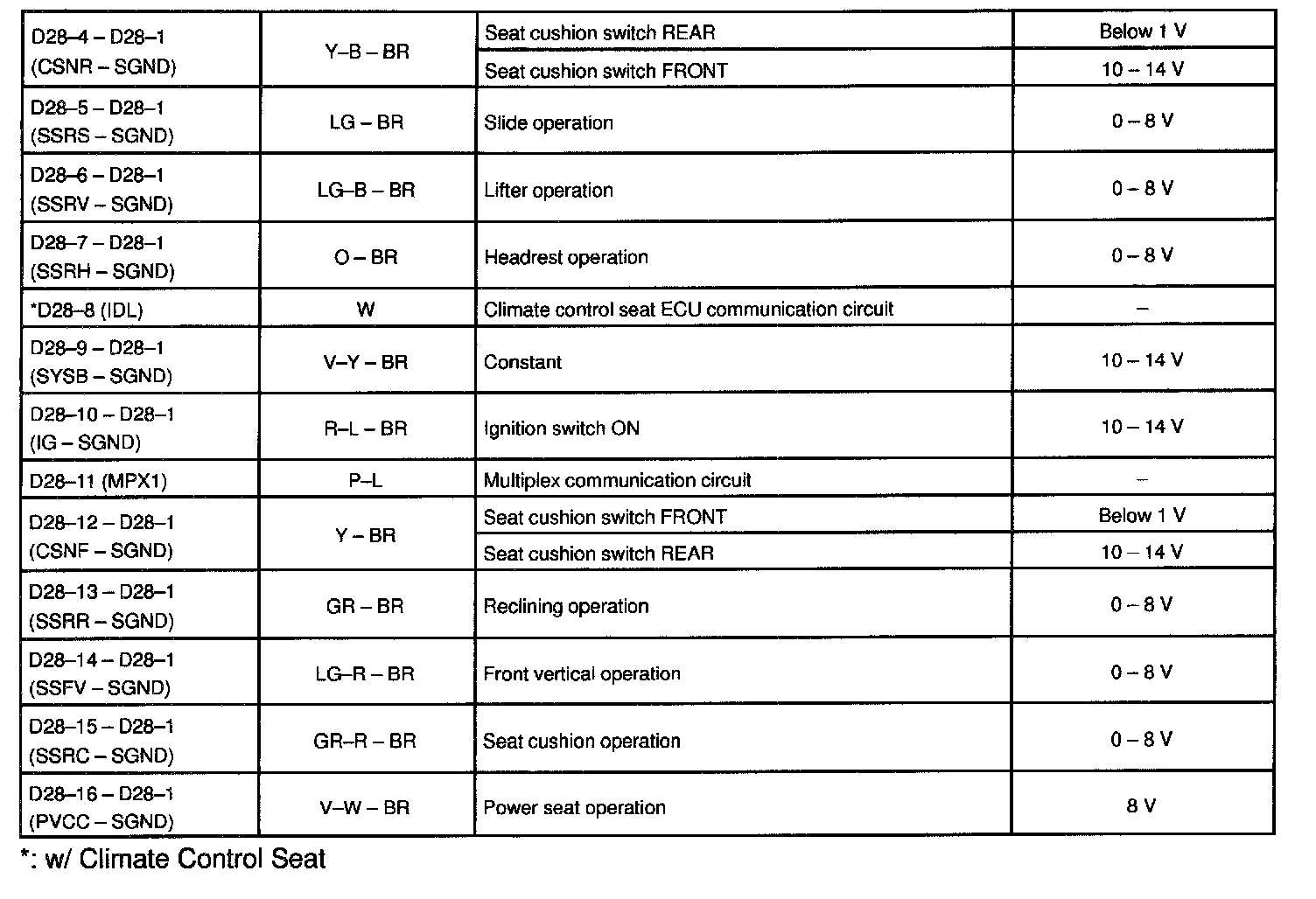 Control Module Pinout Values