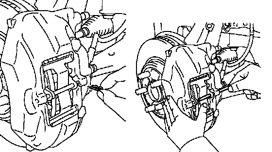 - If the piston is difficult to push in, loosen the bleeder plug and push in the piston while letting some brake fluid escape.