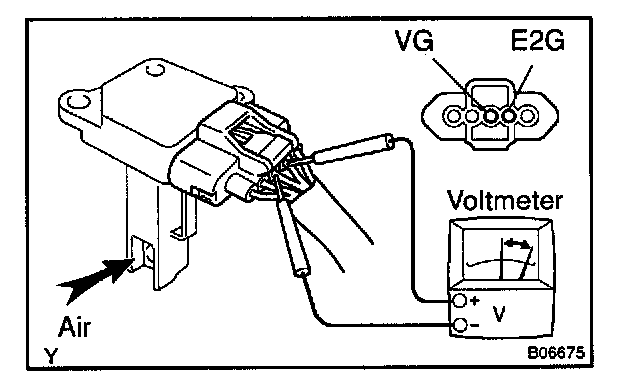 c. Using a voltmeter, connect the positive (+) tester probe to terminal VG, and negative (-) tester probe to terminal E2G.