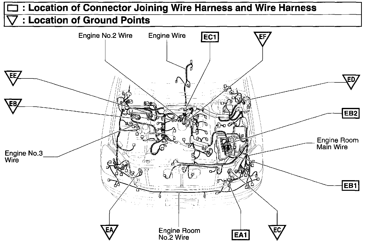EA1 Engine Room No.2 Wire and Engine Room Main Wire (Under the Headlight LH)