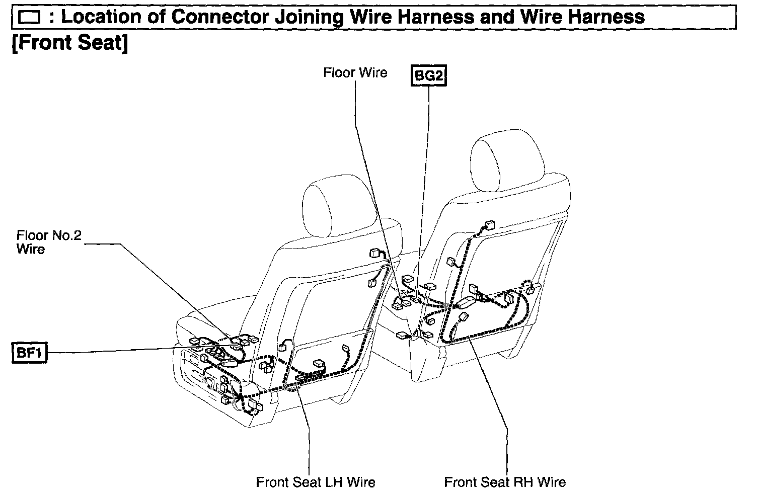 BF1 Floor No.2 Wire and Front Seat LH Wire (Under the Driver's Seat)