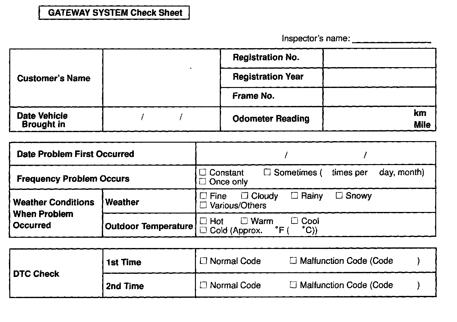 Gateway System Check Sheet: