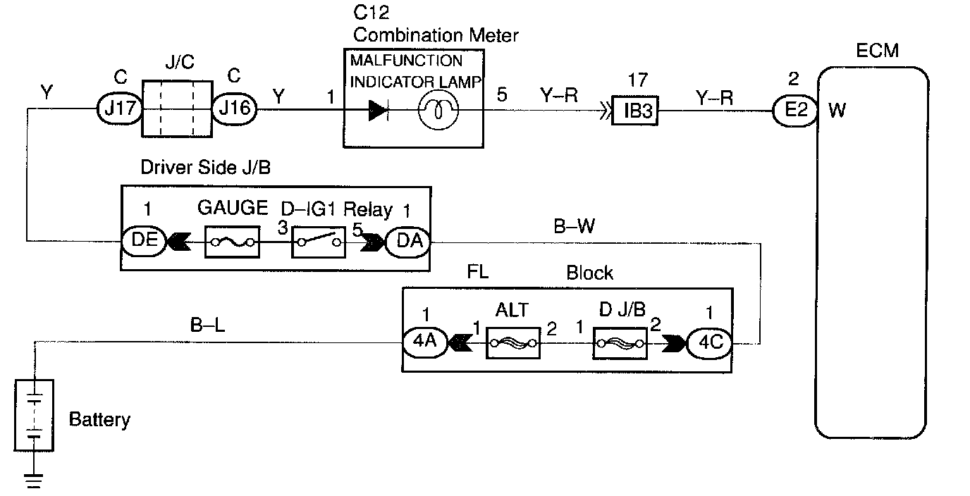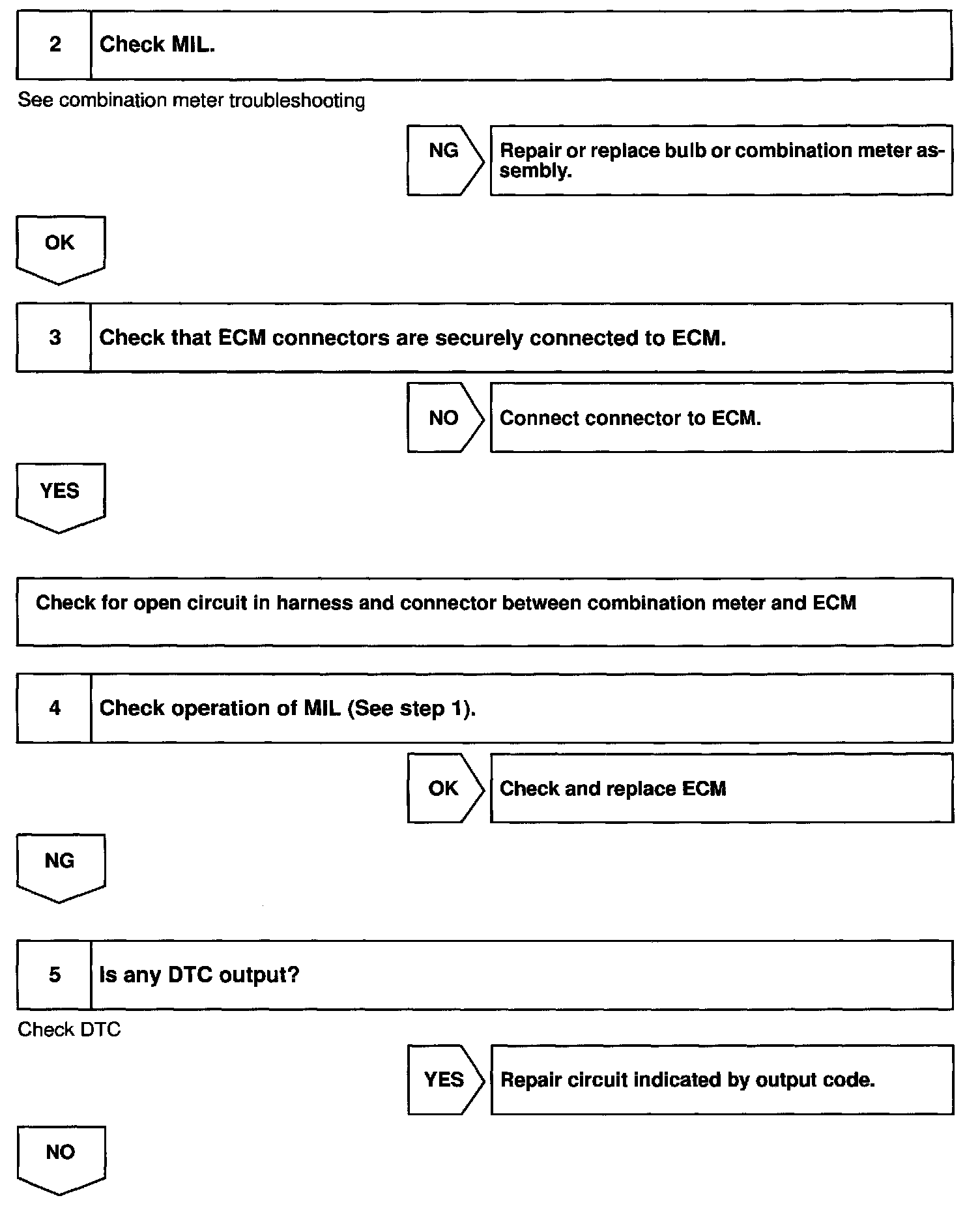 CIRCUIT DESCRIPTIONIf the ECM detects trouble, the MIL lights up. At this time, the ECM records a DTC in memory.