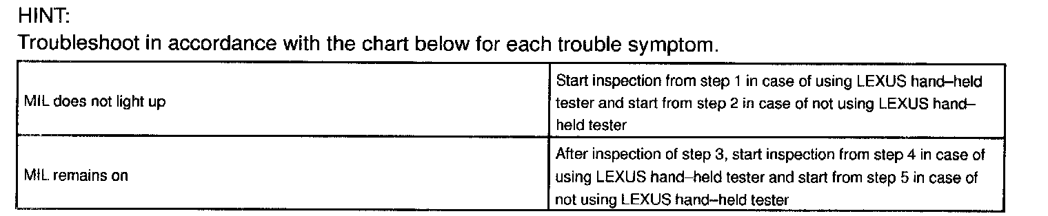 HINT: Troubleshoot in accordance with the chart for each trouble symptom.