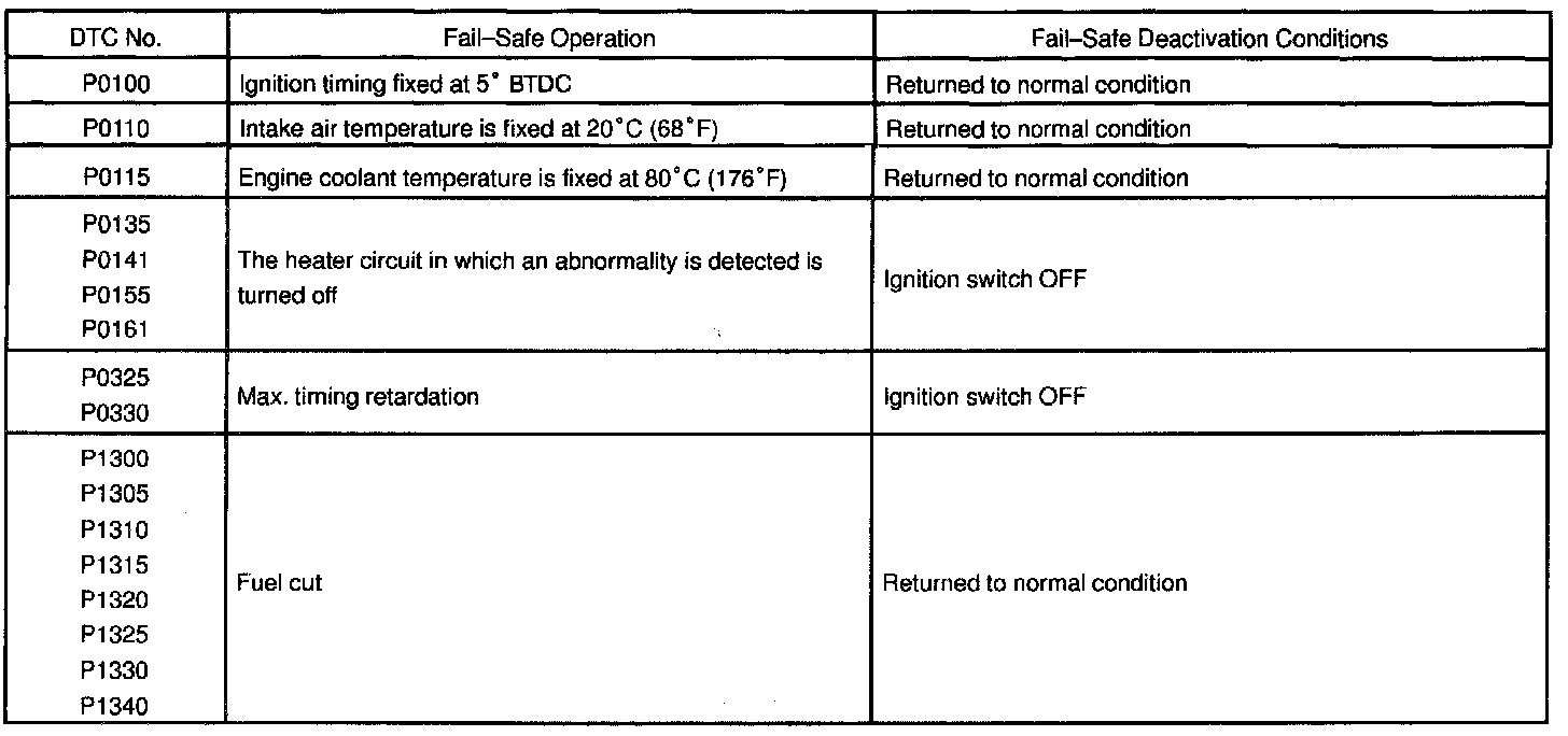 If any of the given codes is recorded, the ECM enters fail-safe mode.