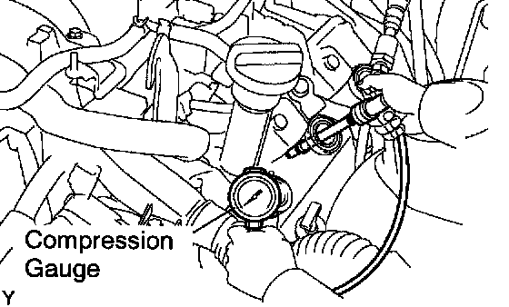 a. Insert a compression gauge into the spark plug hole.