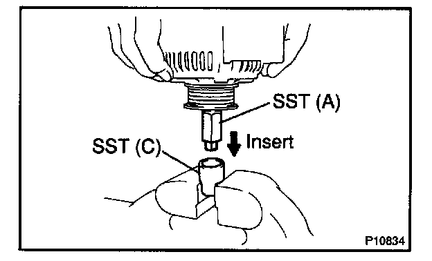 e. Insert SST (B) into SST (C), and attach the pulley nut to SST (C).
