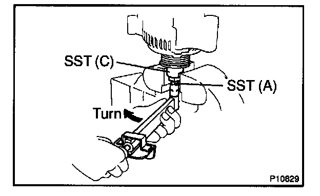 c. Check that SST (A) is secured to the pulley shaft.