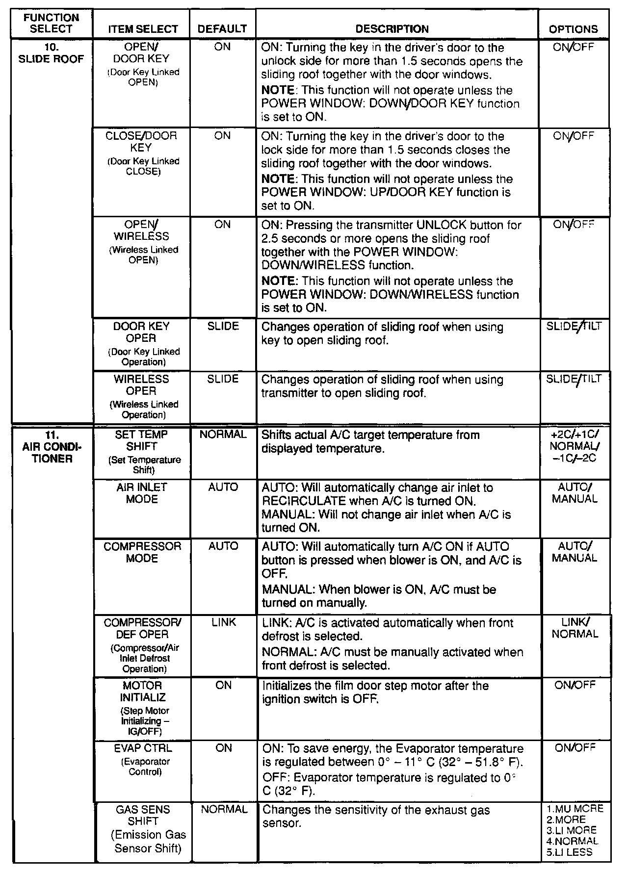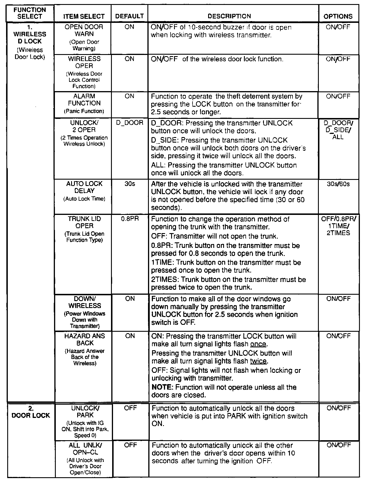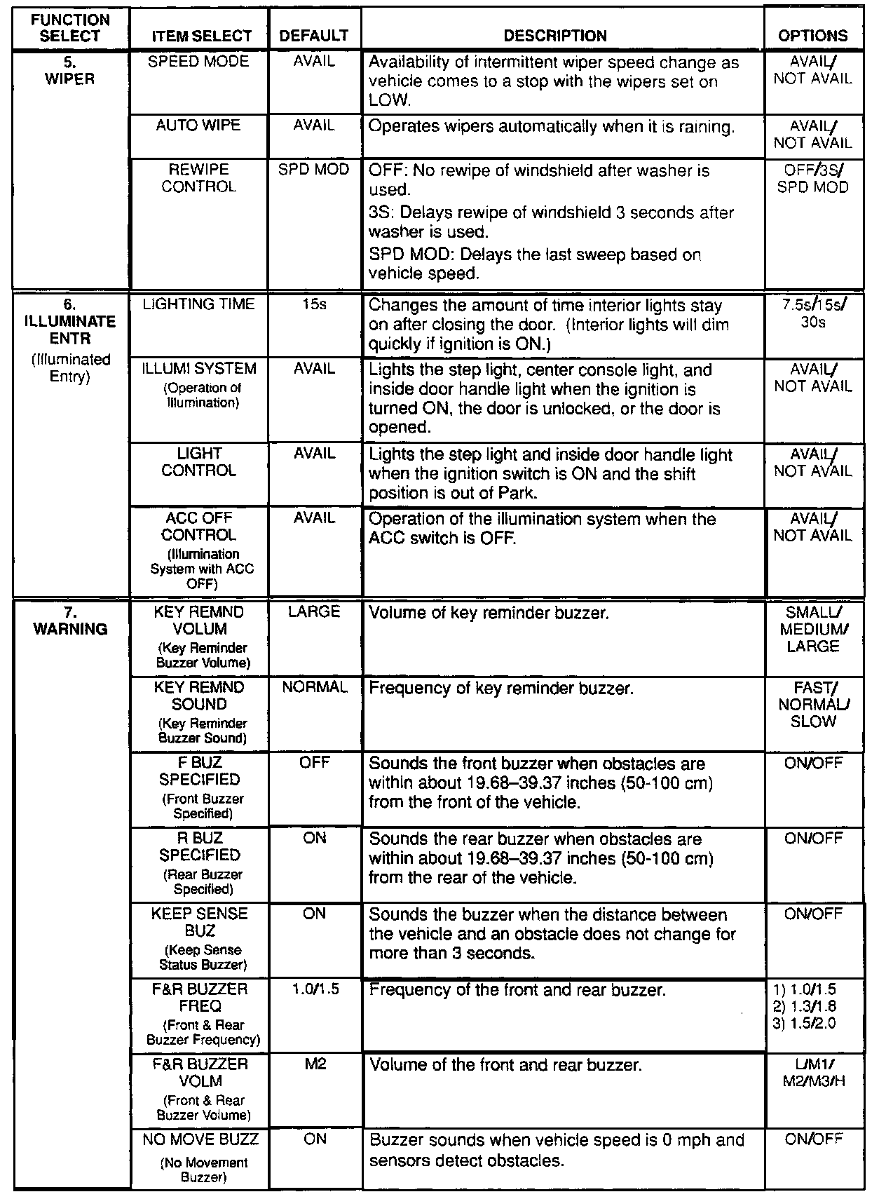 When modifying customize functions, a detailed description, including the "Item Selected", the old setting and the new setting, must be entered into the Lexus National Service History as a vehicle note.