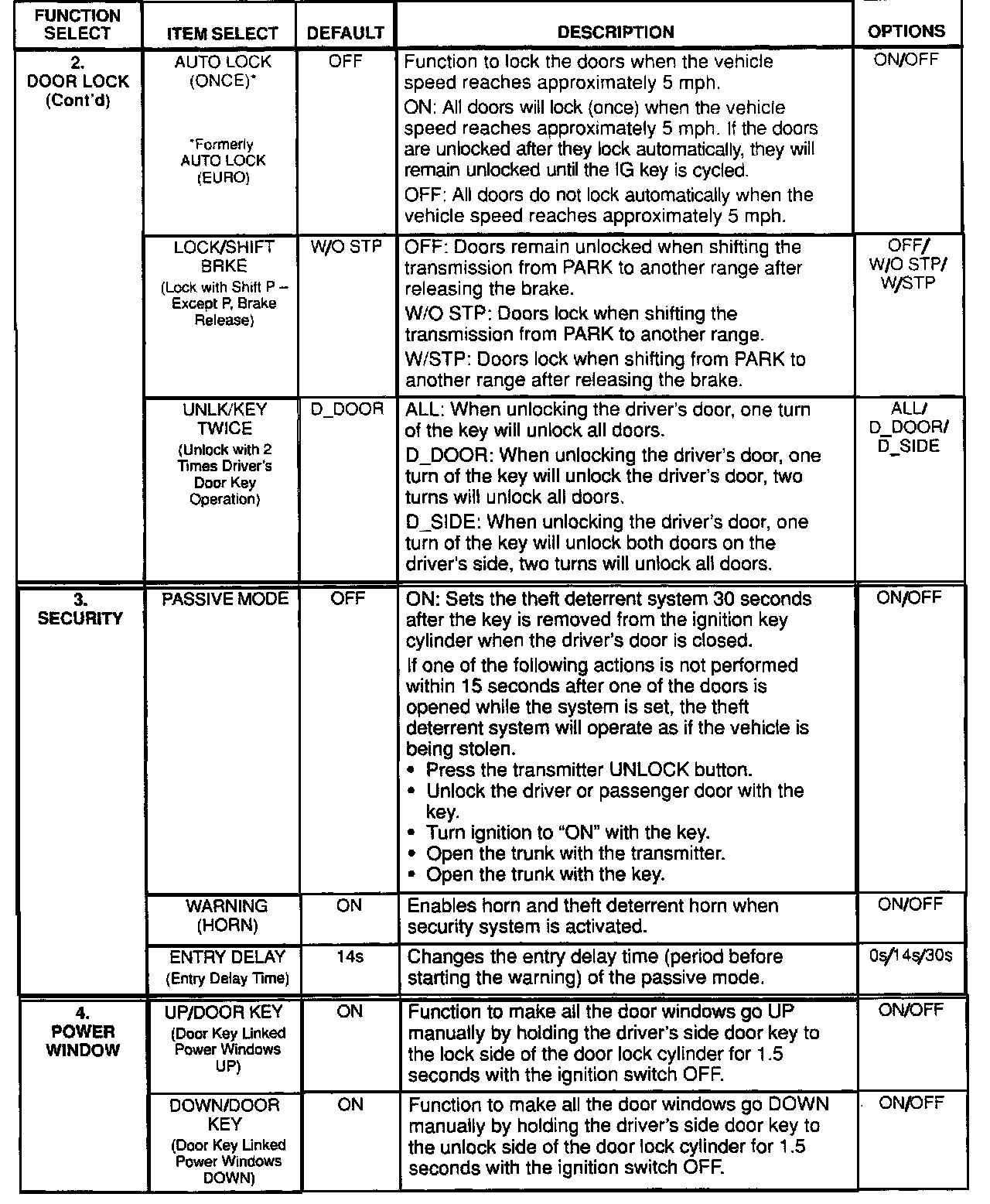The Customize feature for the Lexus Diagnostic Tester allows Lexus Dealers to customize many of the electrical functions on 2002 model year LS 430 vehicles to match individual customer desires. This bulletin will provide you with a comprehensive list of available features for customization on this model only. Individual bulletins will be released for each 2002 Lexus model.