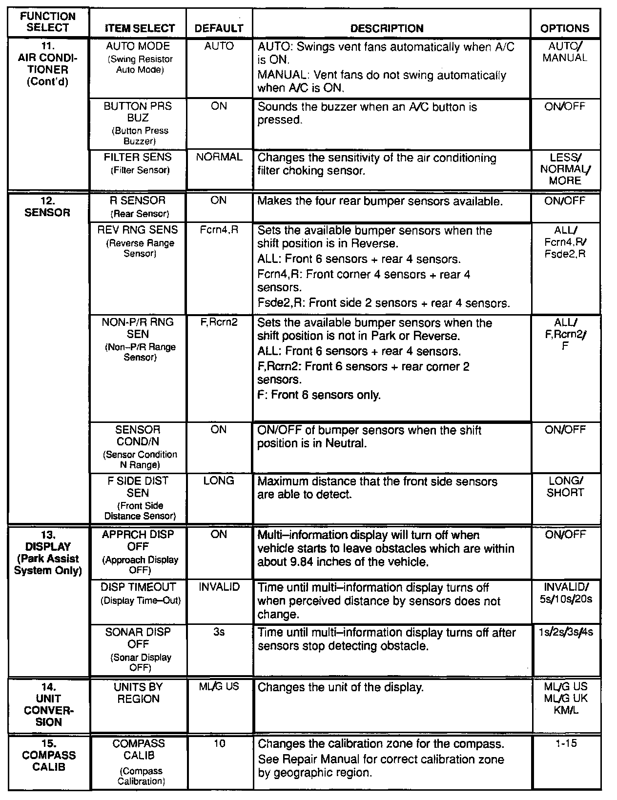 Having these records in the National Service History is very important. If a customer decides that they preferred a previous setting, they may not be able to provide the Dealer with a correct description of the function or its previous setting. The National Service History can be used in conjunction with the customer's explanation to verify that the correct function is being reset.