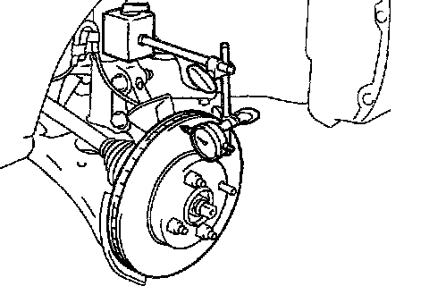 (c) If the disc's runout is maximum value or greater, check the bearing play in the axial direction and check the axle hub runout. If the bearing play and axle hub runout are not abnormal, adjust the disc runout or grind it on an "On-Car" lathe