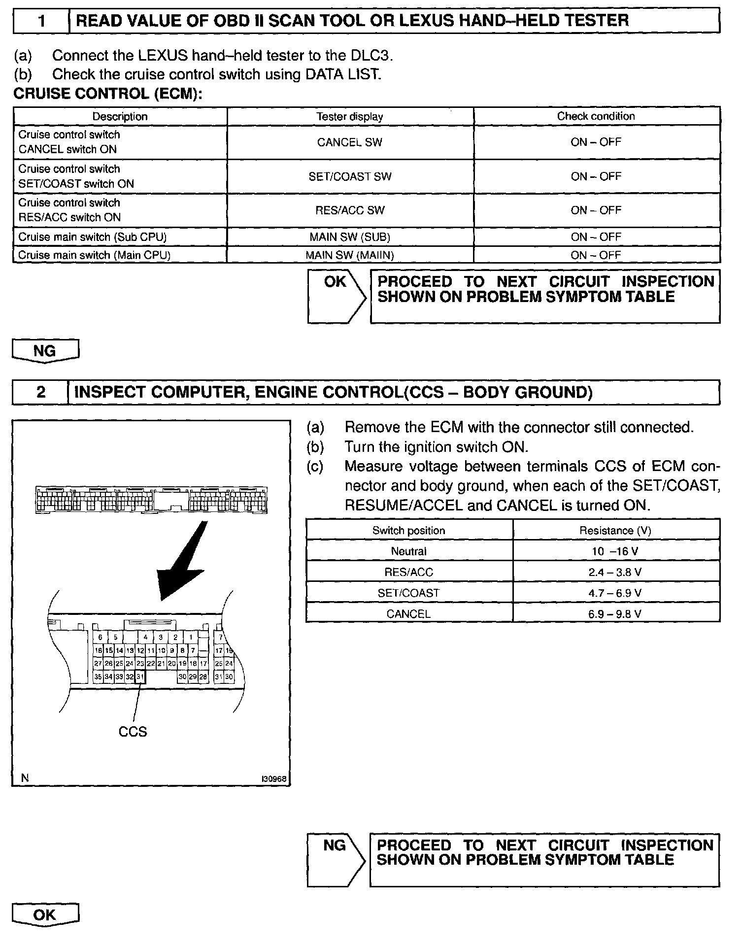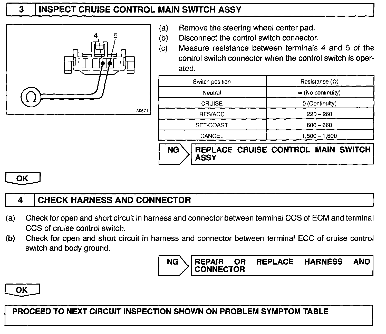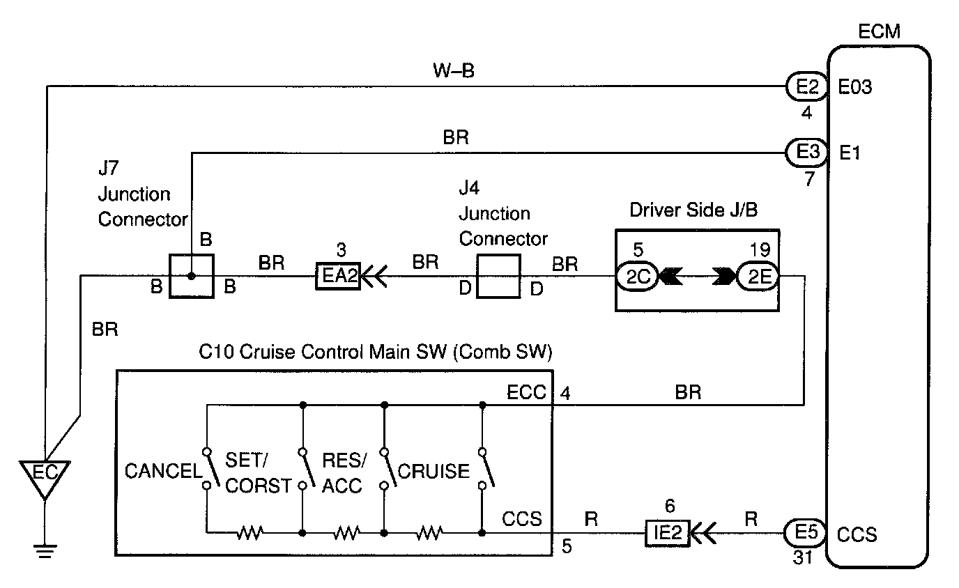 This circuit carries the SET/COAST, RESUME/ACCEL and CANCEL voltage signals to the ECU.