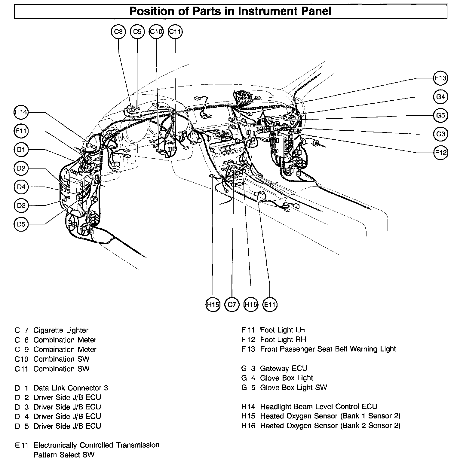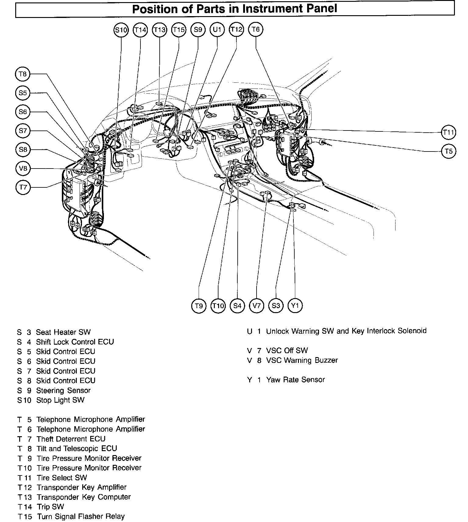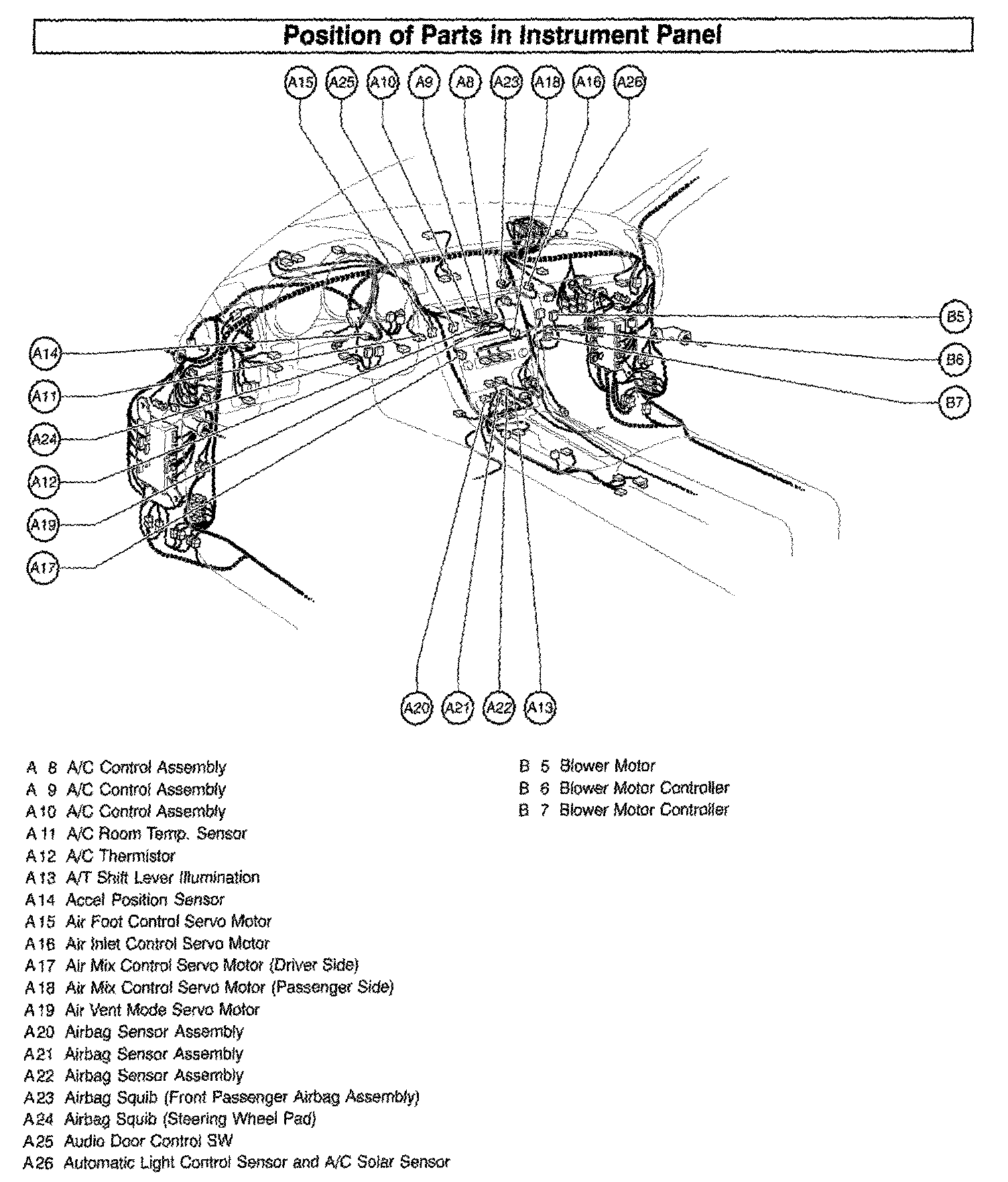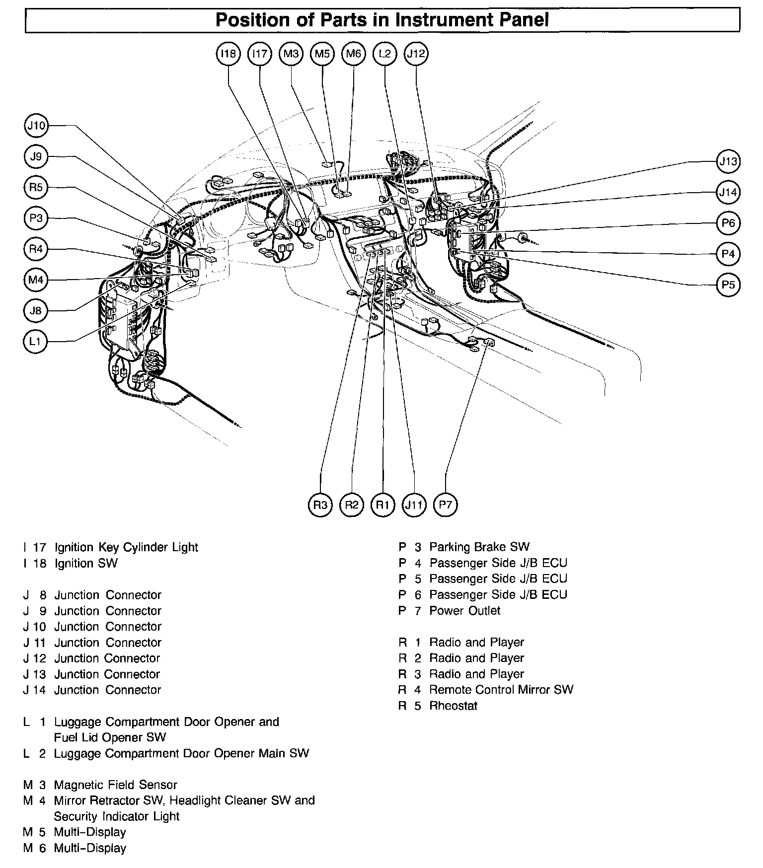 Position Of Parts In Instrument Panel Part 1: