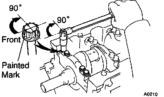 4. Retighten the crankshaft bearing cap bolts by 90° in the numerical order shown.