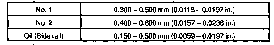1. Using a feeler gauge, measure the clearance between new piston ring and the wall of the ring groove
