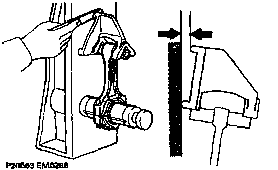a. Using a rod aligner and feeler gauge, check the connecting rod alignment.