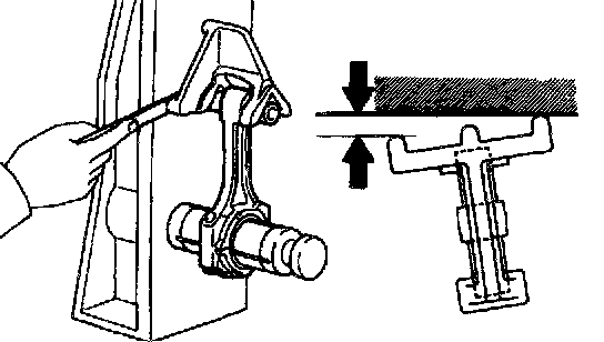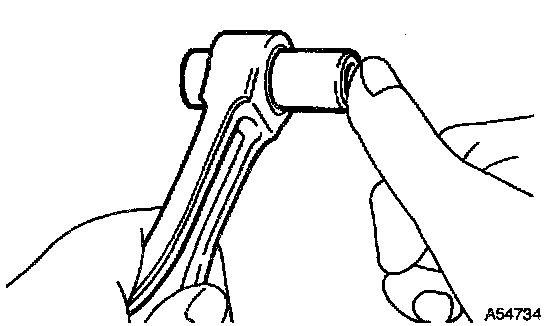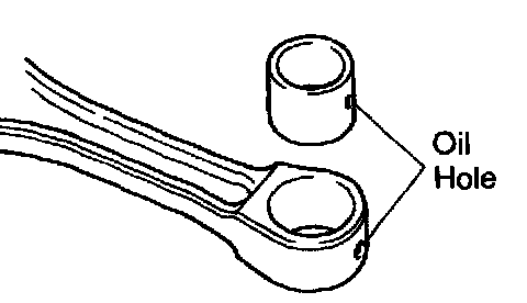 d. Check the piston pin fit at normal room temperature. Coat the piston pin with engine oil, and push it into the connecting rod with your thumb.