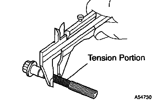 a. Using vernier calipers, measure the tension portion diameter of the main bearing cap bolt.