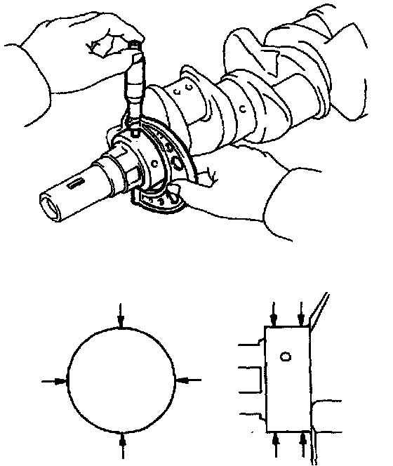 2. Check each main journal and crank pin for taper and out-of-round as shown.