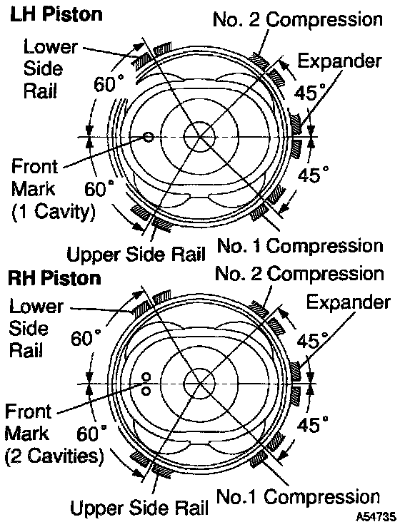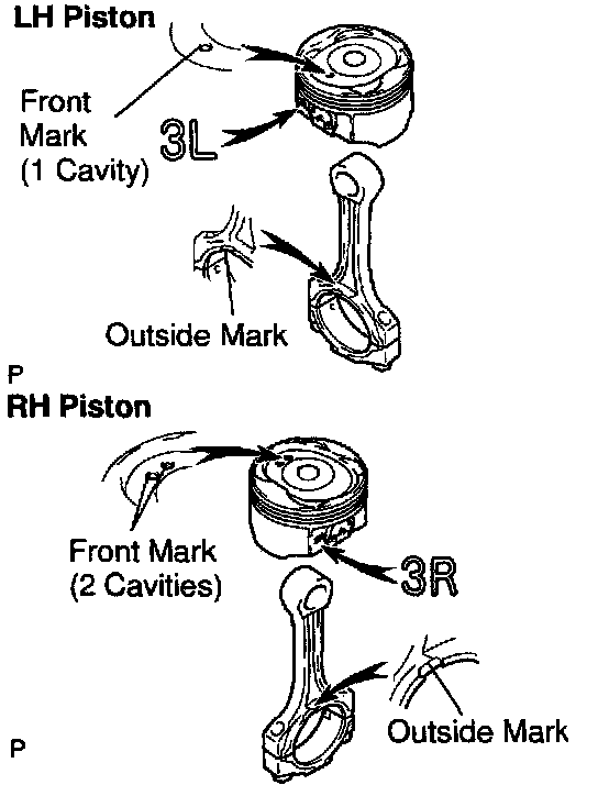 NOTICE: The shape of the piston varies for the LH and RH banks. The LH piston is marked with "3L", the RH piston with "3R".