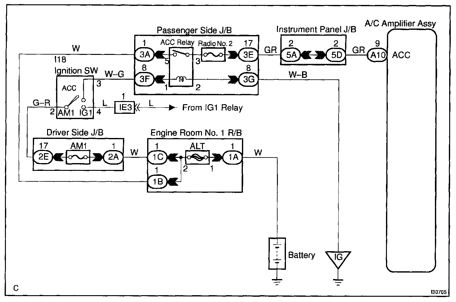 This circuit supplies power to the A/C amplifier assy. It supplies power to the illumination for the clock.