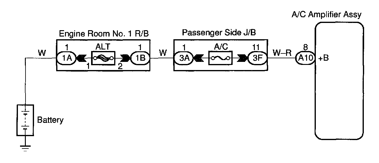 CIRCUIT DESCRIPTIONThis is the back-up power source for the A/C amplifier assy. Power is supplied even when the ignition switch is off and is used for diagnostic trouble code memory, etc.