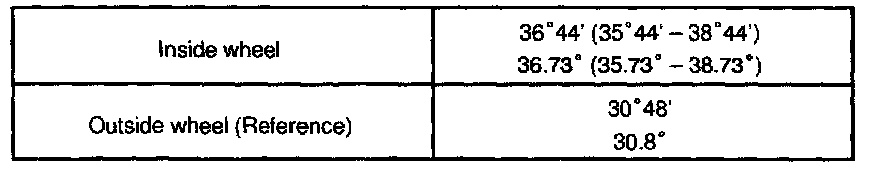 If the wheel angles differ from the standard of the specification, inspect the toe-in.