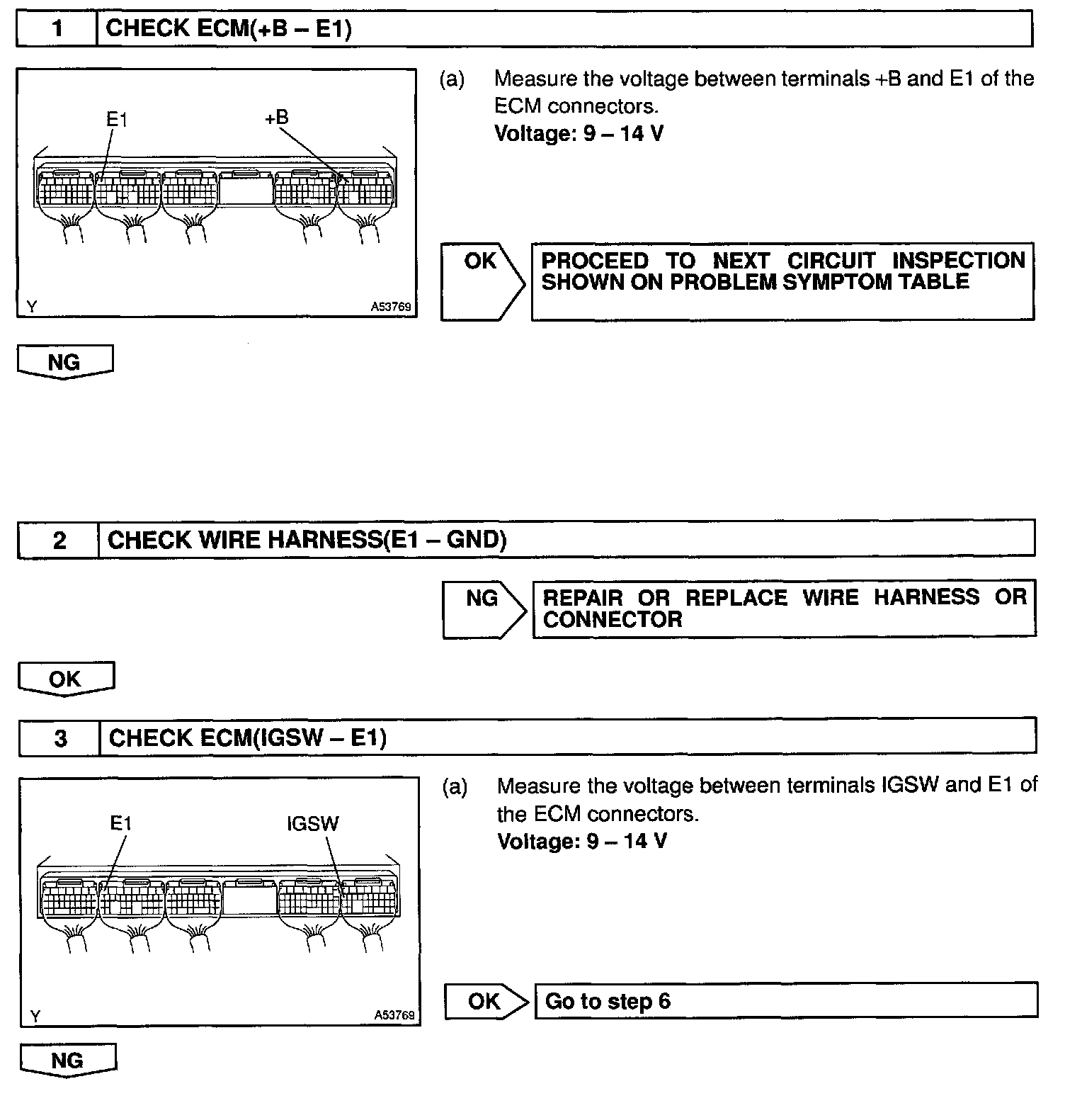This signal causes current to flow to the coil, closing the contacts of the EFI main relay and supplying power to terminal +B of the ECM.