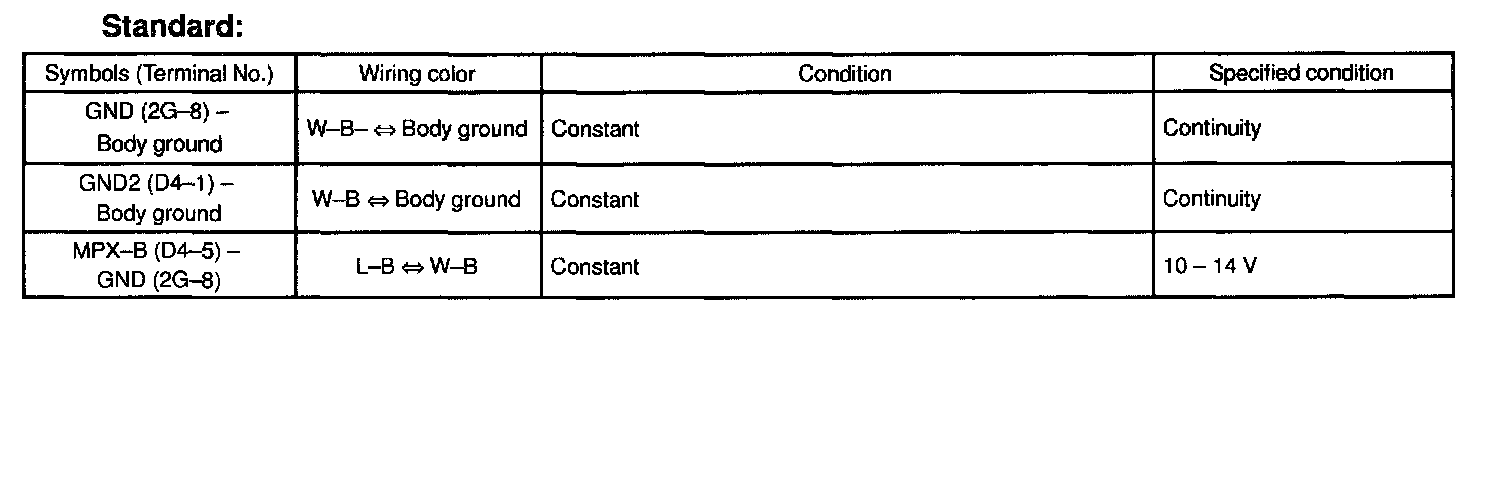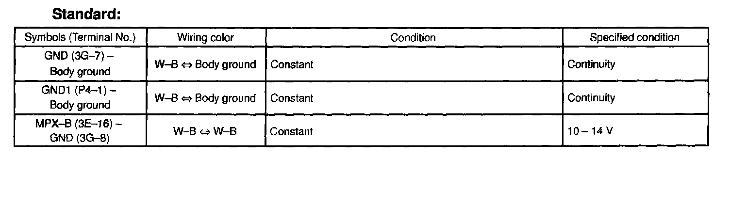 - Inspect the power source voltage and the body ground before the operation inspection.