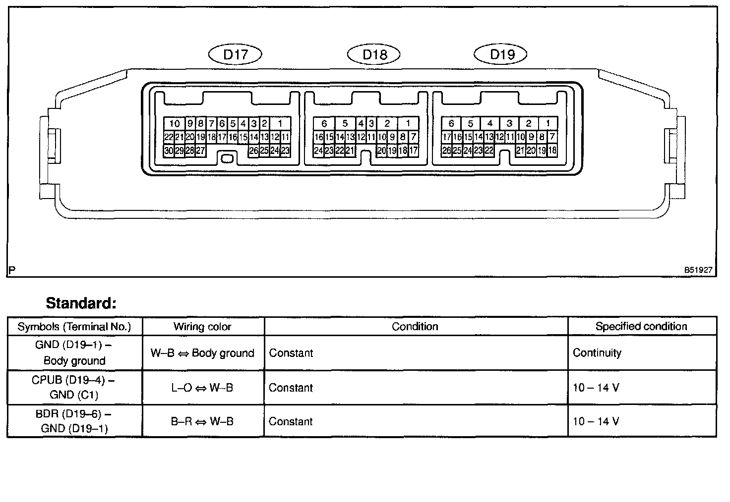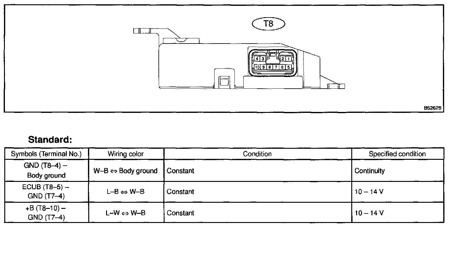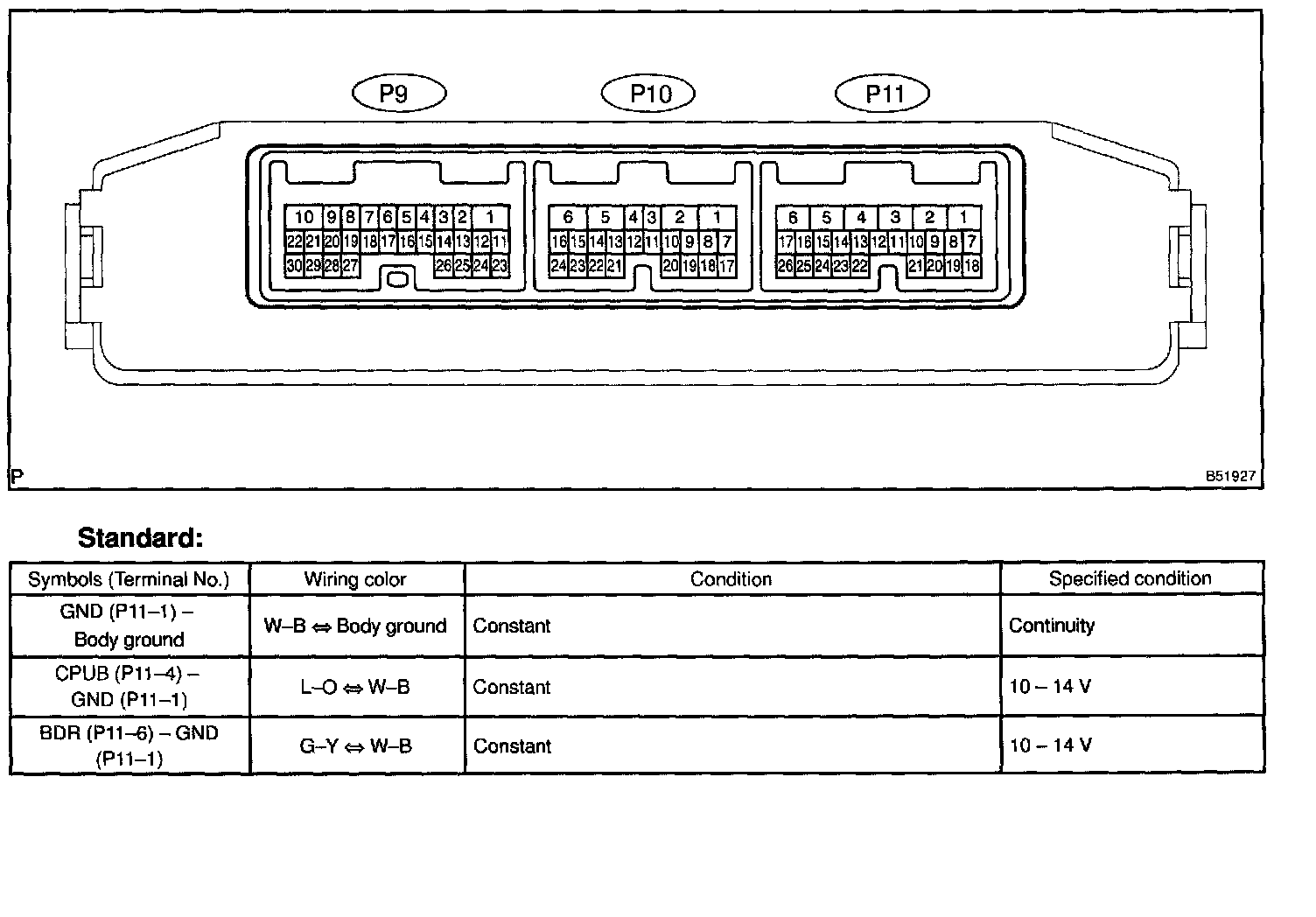 HINT: If the value is not as specified the vehicle's side may be defective. In this case, inspect the harness connector and fuse between the ECU and battery, then repair or replace it if necessary.