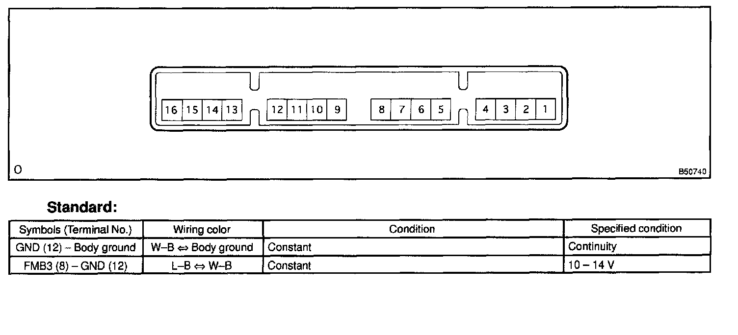 b. Check the voltage and continuity of each terminal of the vehicle's side connectors.
