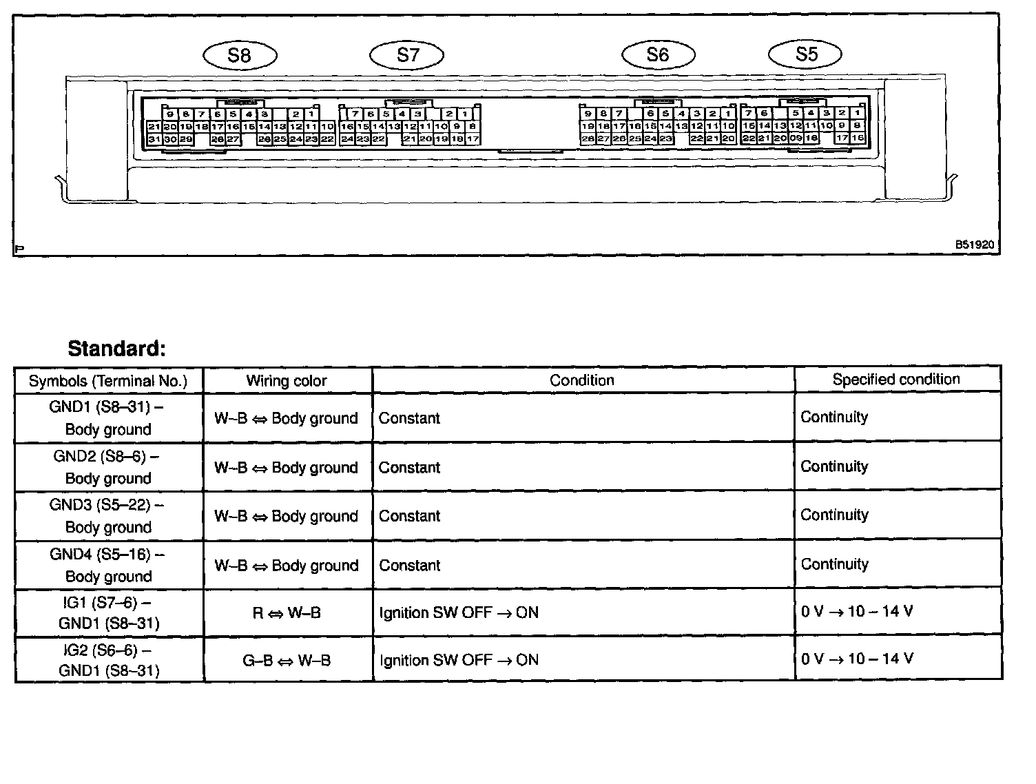 a. Disconnect the ECU connectors S5, S6, S7 and S8.