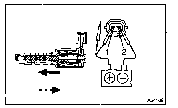 b. Connect the positive (+) lead from the battery to terminal 1 and negative (-) lead to terminal 2, and check the movement of the valve.